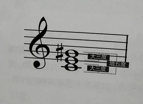 “根音”到“三音”是大三度,“三音”到“五音”也是大三度,这使得从“根音”到“五音”成了增五度。增三和弦的音响效果有一种开放过度的偏离感。