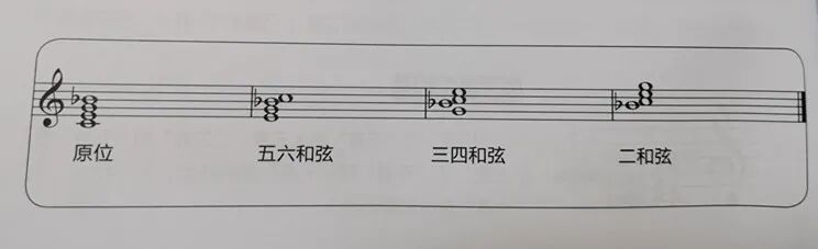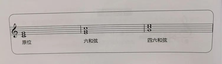 以根音为最低音的和弦叫原位和弦,如果以三音、五音为最低音,则叫作和弦转位,转位后的和弦被称作“转位和弦”,其根音、三音、五音的名称不变。