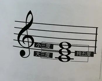“根音”到“三音”是大三度,“三音”到“五音”是小三度,从“根音”到“五音”是纯五度。大三和弦的音响效果是非常明朗的。