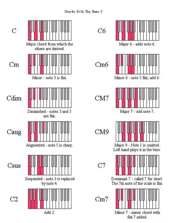 将三个或三个以上的音,按三度叠置起来,就构成了和弦,和弦的出现增强了旋律的表现能力与和声的色彩感,同时也使音乐更加丰富,常用的和弦有三和弦、七和弦、九和弦等,其中三和弦(三个音的和弦)和七和弦(四个音的和弦)使用频率最高。