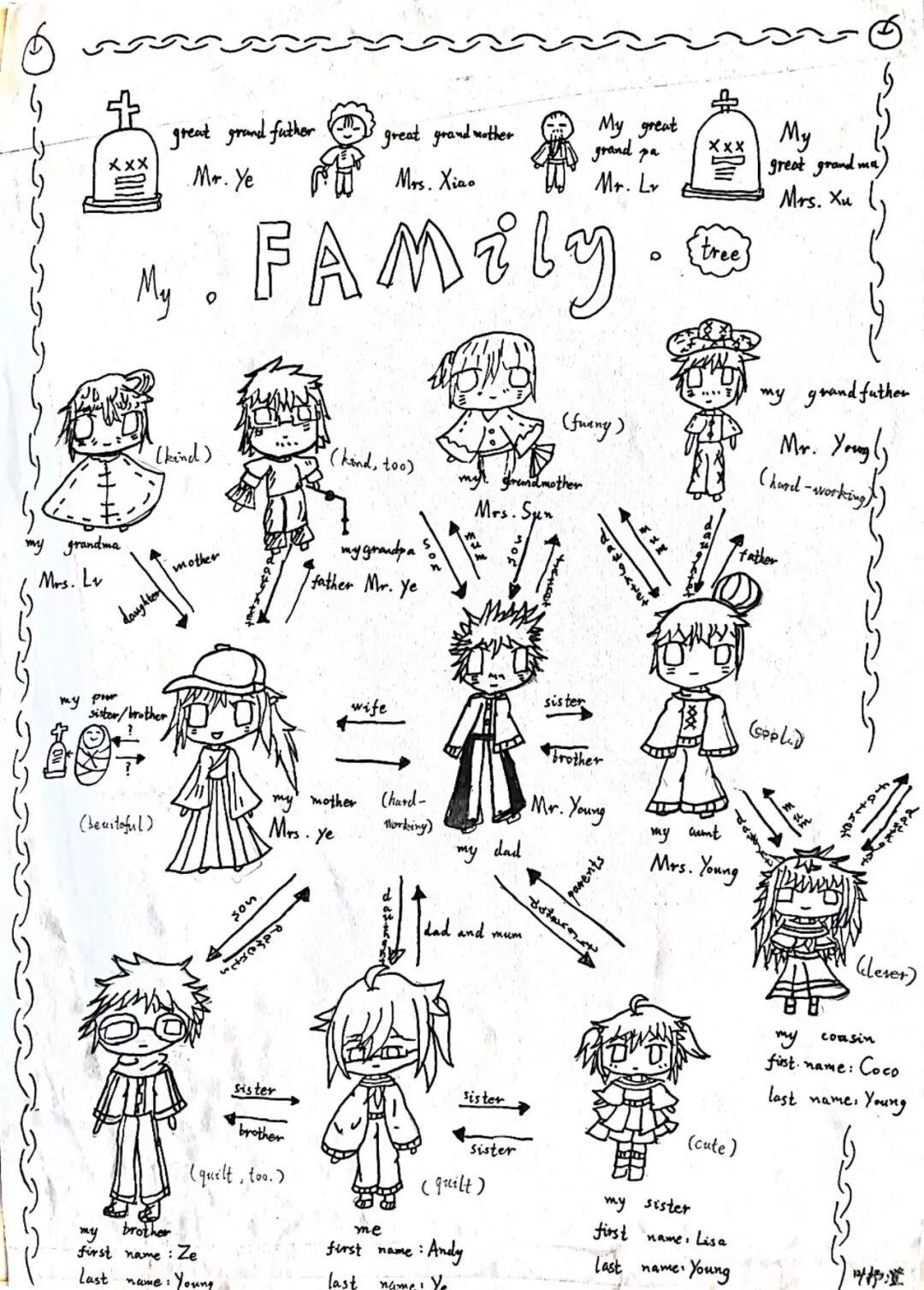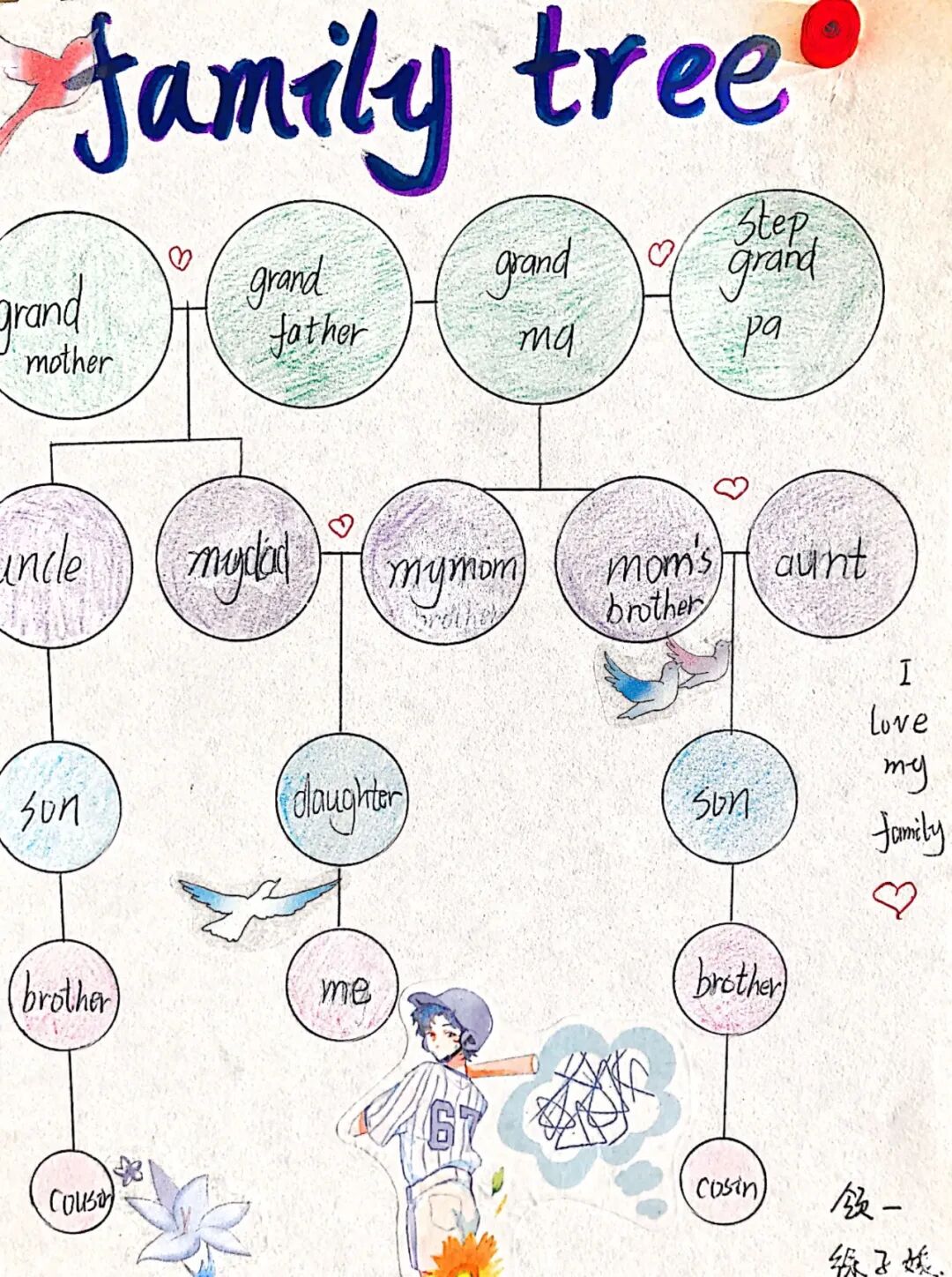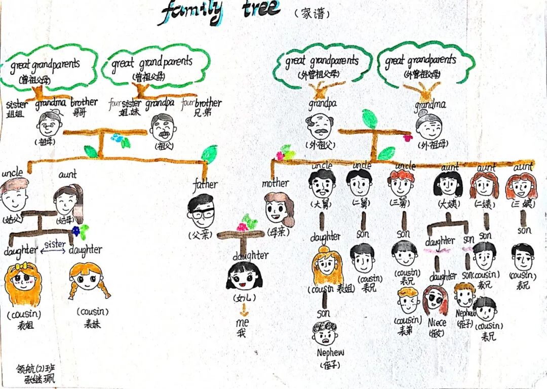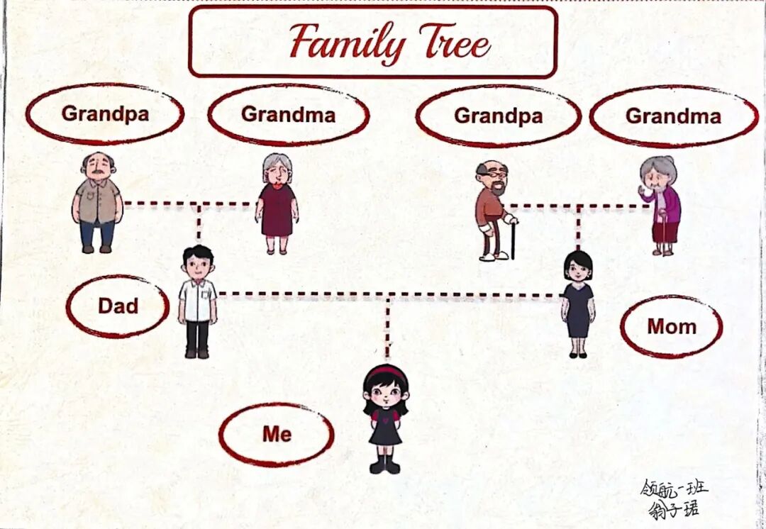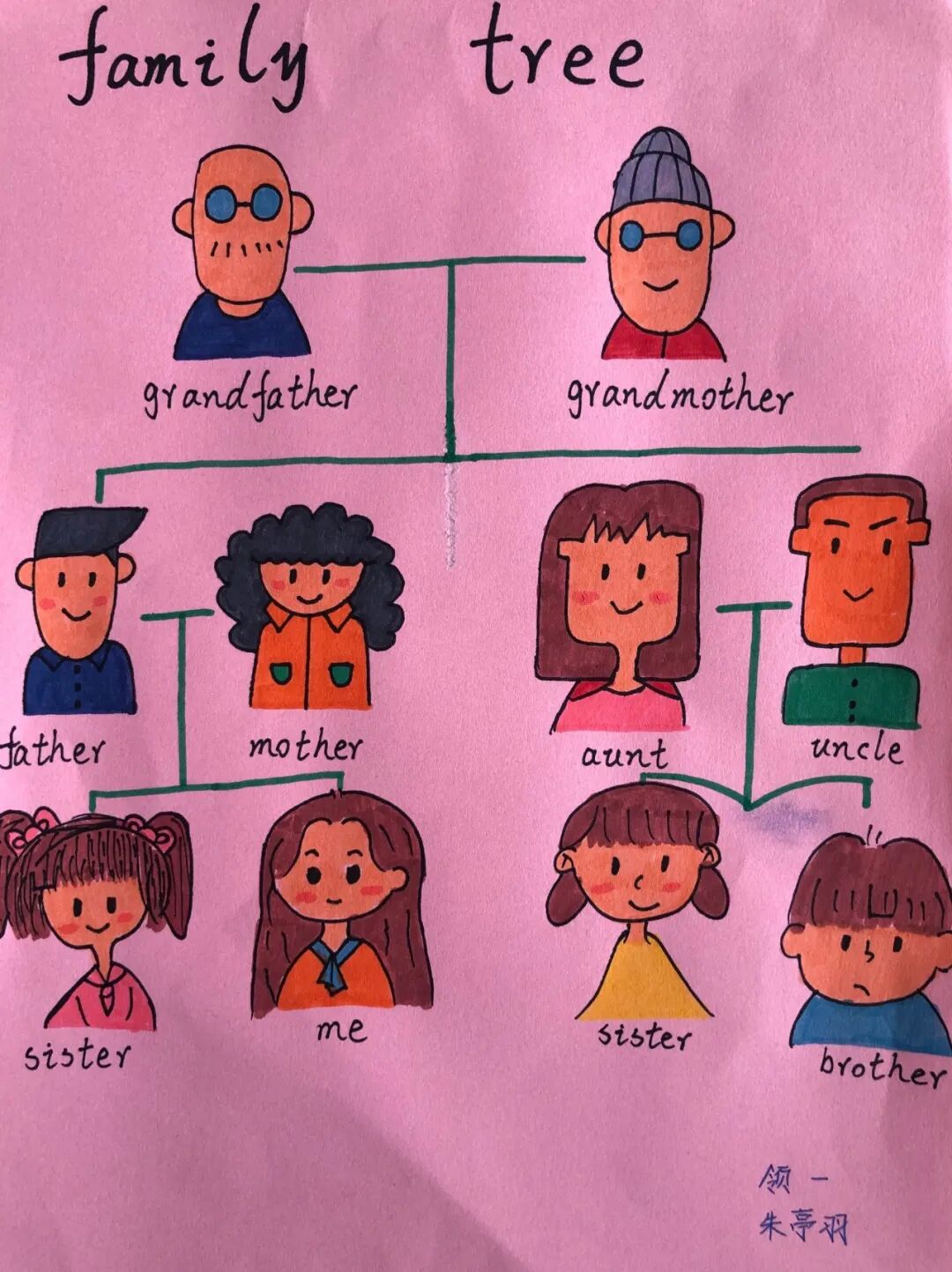 “ ” 一笔一划绘制家庭成员 一撇一捺尽显认真严谨 ENGLISH.TIME ENGLISH.TIME 英语家谱 “为人修身莫忘本,百事首重养育恩”,一次英语特色作业的完成,让同学们感悟到了英语学科的魅力,推动了我校英语学科特色活动的发展。更让同学们在寻根问祖中成为好家风的继承者和实践者,逐步成长为具有“中国精神,国际视野”的时代新人。 图文:初一年级英语组![]()