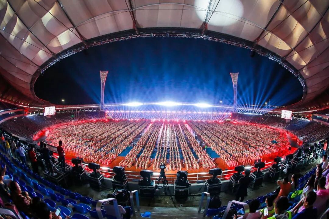 庆祝海南建省办经济特区30周年万人竹竿舞表演活动于4月28日晚8时在海口五源河体育场举行,这也是五源河体育场建成以来的首场正式活动。蔚为壮观的万人规模、色彩缤纷的民族服饰,欢快动感的竹竿舞步,这场亮点多多的大型表演活动展示了海南人民加快建设美好新海南的信心,向全世界推广海南特色文化。