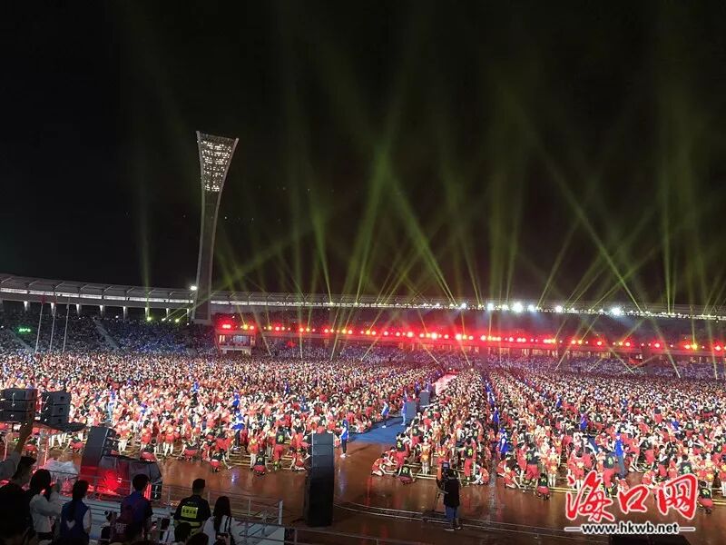 28日19时许,在海口市五源河体育场后台演员室内,记者见到了海南籍歌手、演员汤子星,他正在为万人竹竿舞活动的演出做准备。汤子星兴奋地说:“身为土生土长的海南人,今天能站在五源河体育场上歌唱感到非常骄傲。”提到本次11999人600个方阵组成的竹竿舞表演,汤子星感叹:“这是非常震撼的场面,这么多人齐心聚力完成同一项表演真的不简单。”