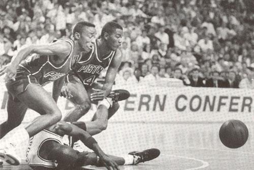 一说起王朝球队,大家首先想到的自然是湖人、凯尔特人、公牛等队,他们都完成过三连冠,除此之外马刺、勇士等队在球迷心中也有着很高的地位,而八十年代的活塞同样是联盟顶级强队,但人们一提起他们都是嗤之以鼻,他们也有个广为人知的外号——坏小子军团,现役球员中格林、贝弗利等人都被称之为恶汉,但他们和当年的坏小子军团相比完全是在过家家,那么传说中的坏小子军团到底有多恐怖呢?