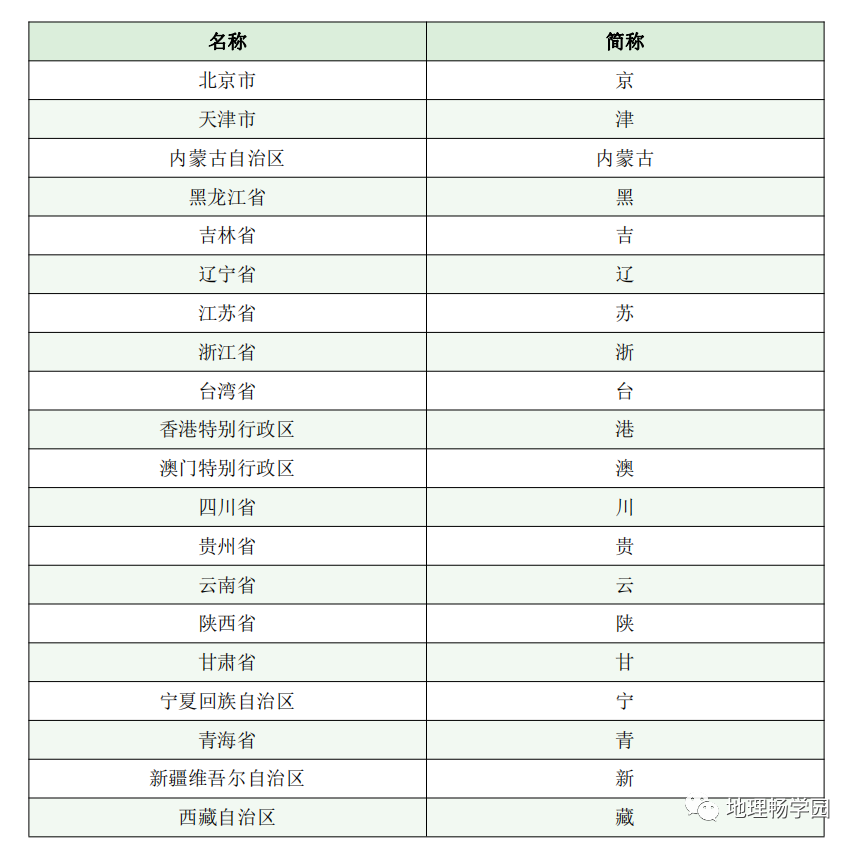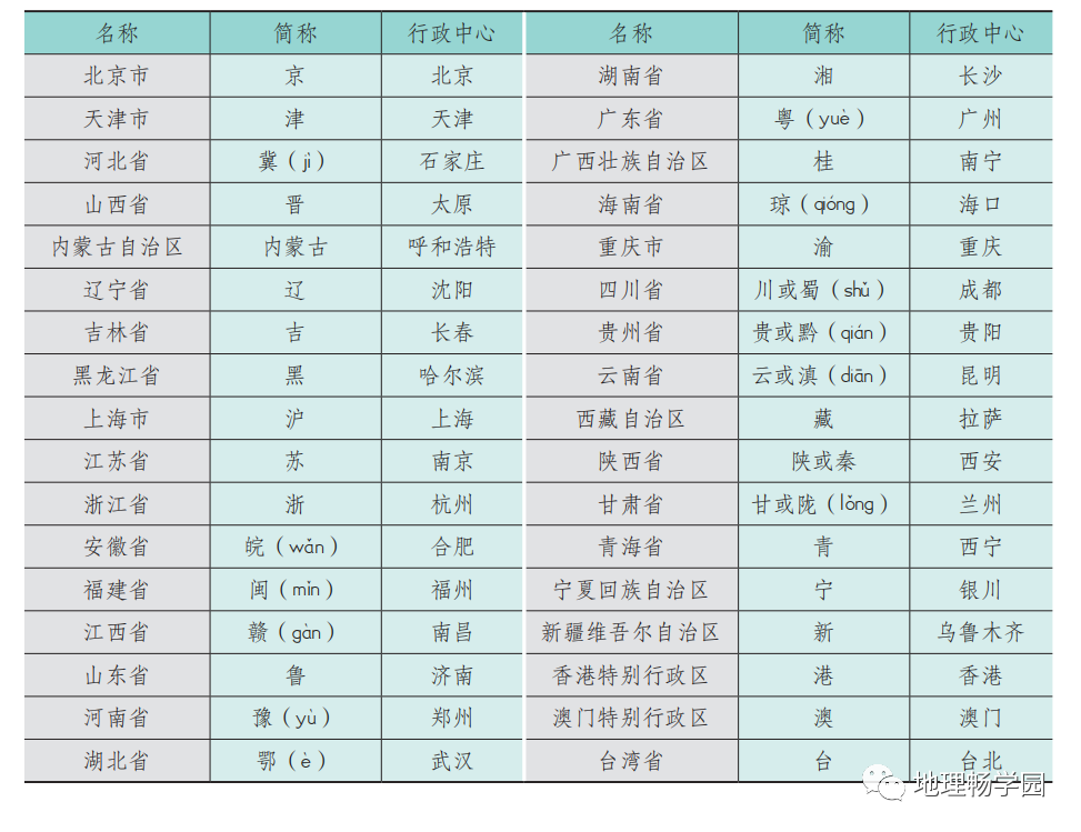 中国34个省级行政区域的名称、简称和行政中心