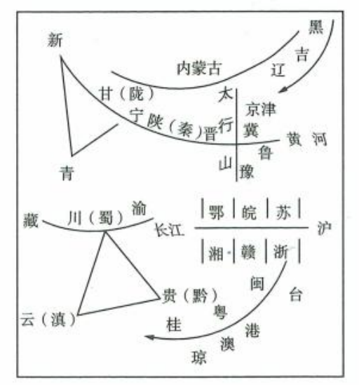 (1)陕西省轮廓形似一个跪着的兵马俑