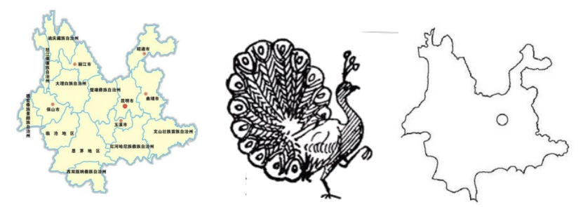 (3)云南省轮廓形似一只开屏的孔雀