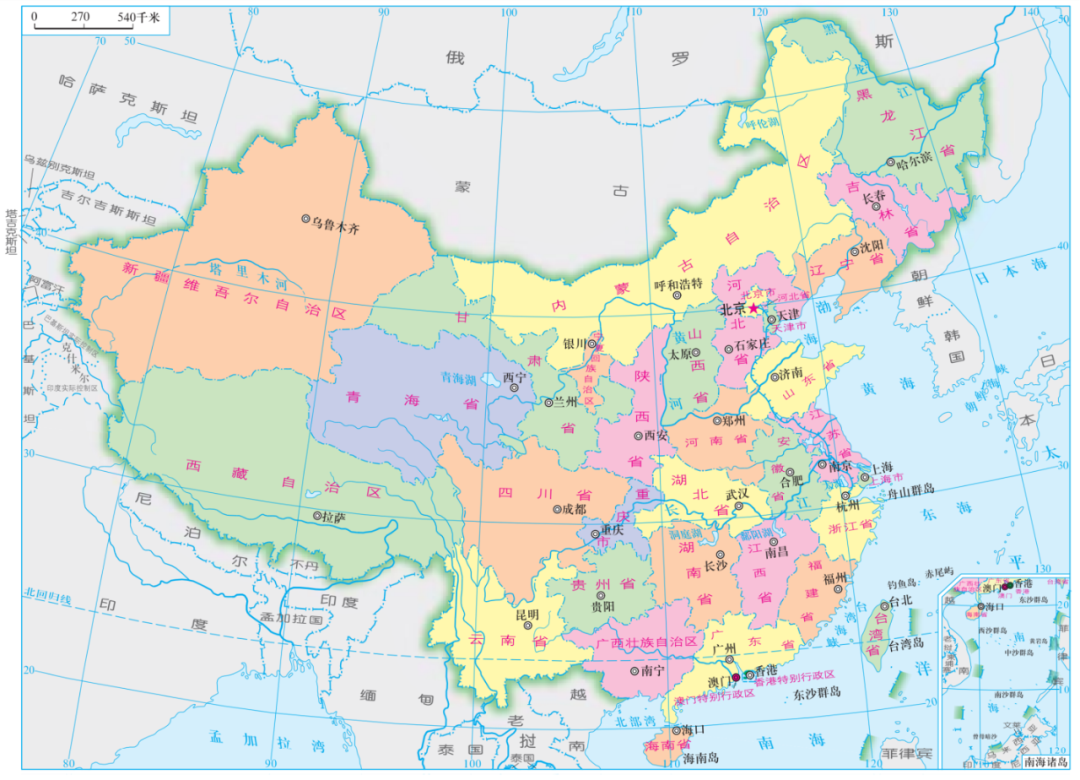目前,我国有23个省、5个自治区、4个直辖市和2个特别行政区,共计34个省级行政区域。