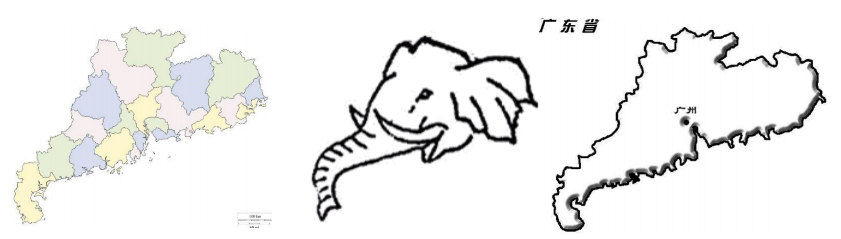 (4)广东省轮廓形似一个大象头