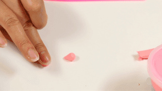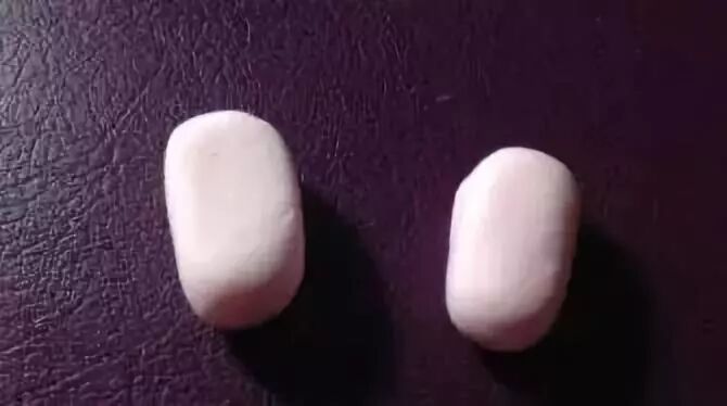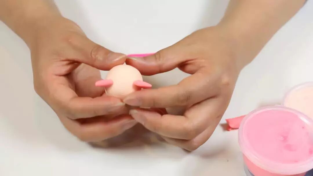 还是粉色的粘土,捏出两个小兔子的耳朵,要差不多一样大的形状哦;