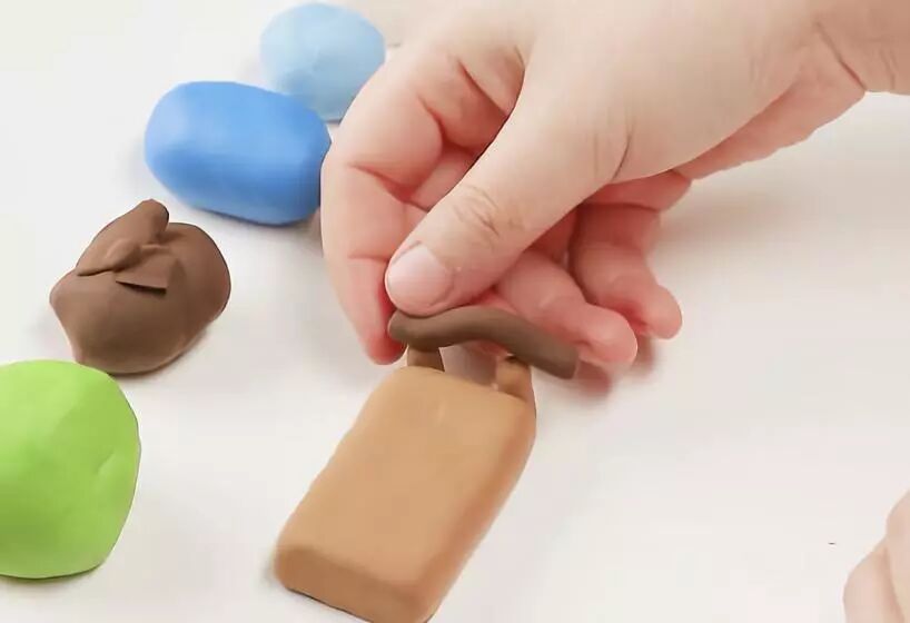 将捏好的身体和头部粘在一起。