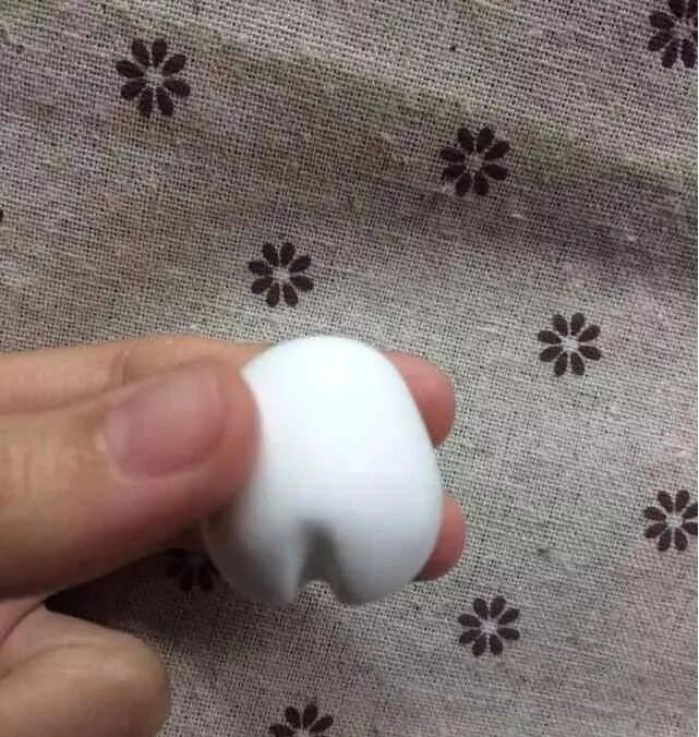 用白色粘土将圆球包住,做成兔子头部。