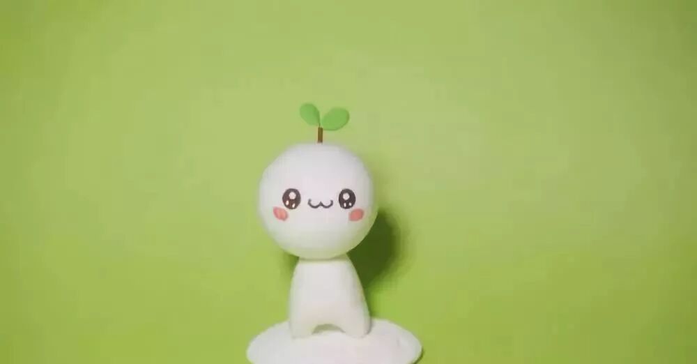 捏两片叶子,搓一条枝杆,组成它头顶的小草。