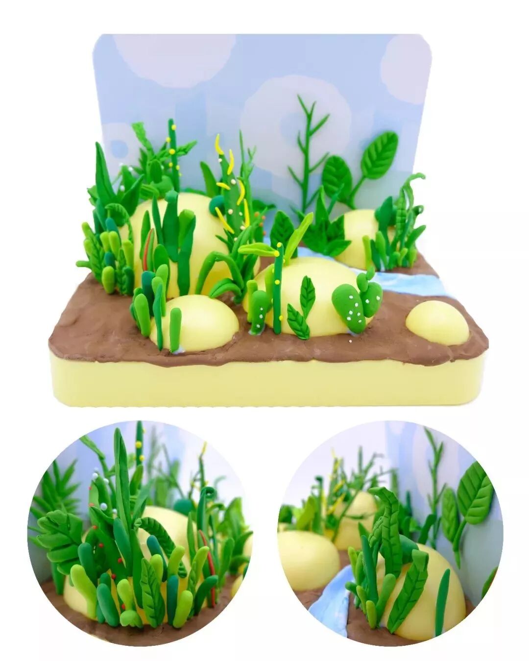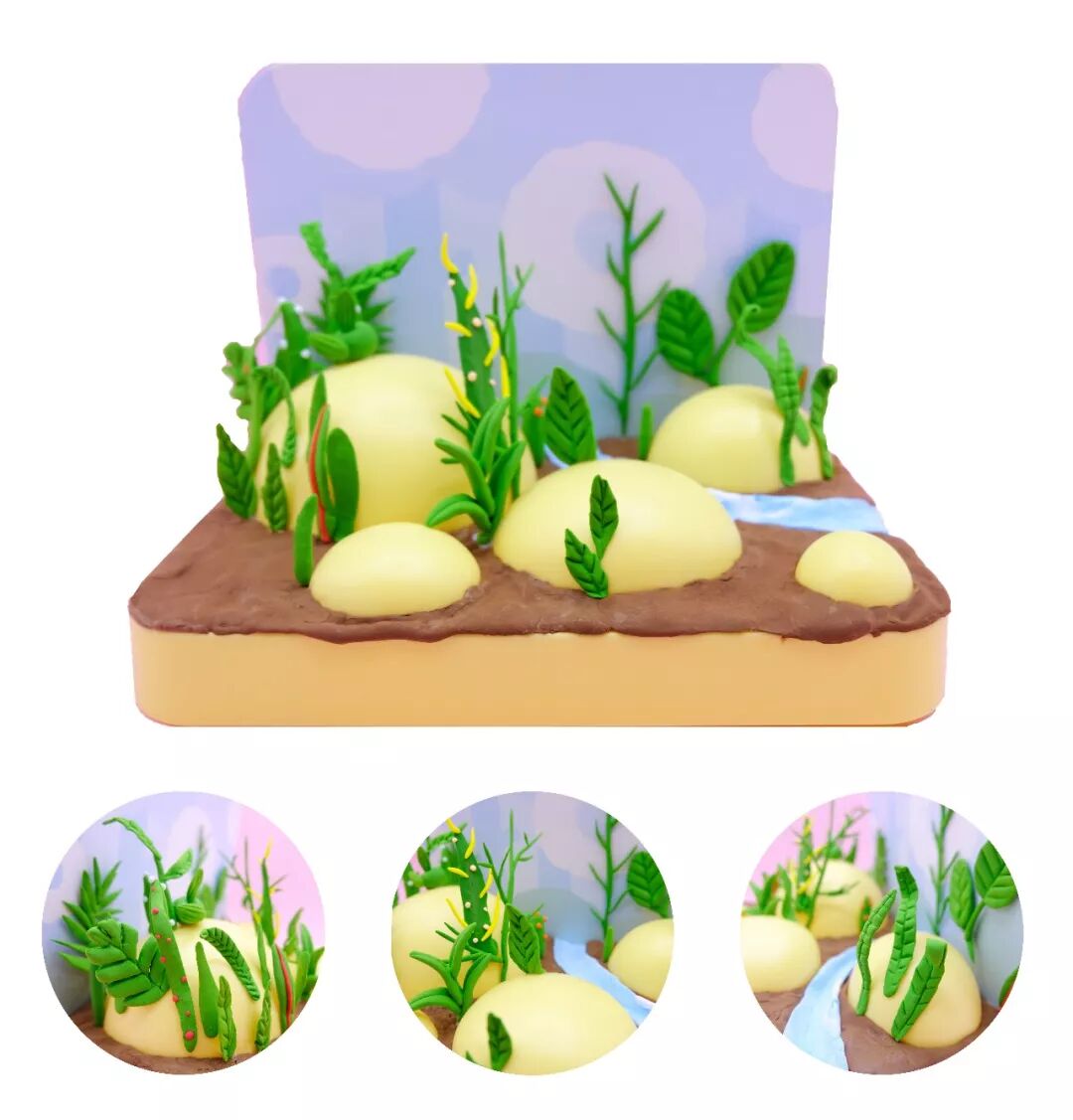 把绿植抠出来,用一块粘土固定再底部,这样就可以和花花、小蘑菇一样,随意摆在乐园里了!
