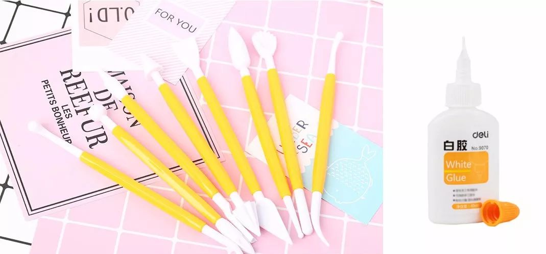 PS:大家可以自备白胶、粘土工具和其他颜色的粘土哦。白胶可以让连接部分粘的更牢,用粘土工具做出的作品更精致。