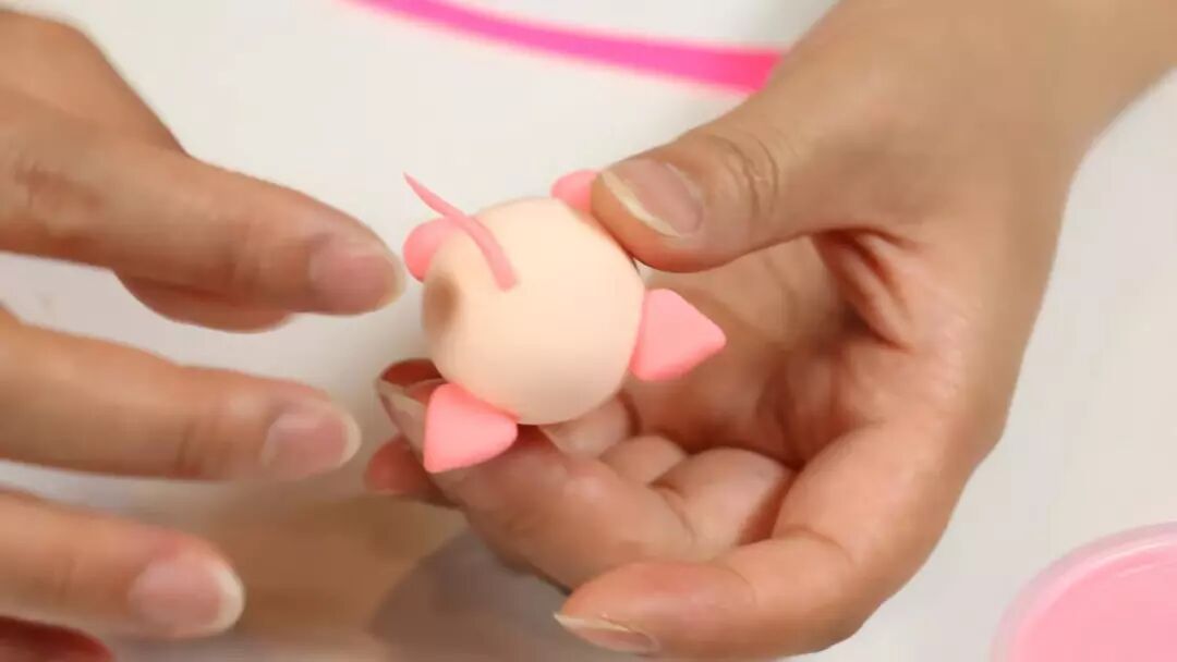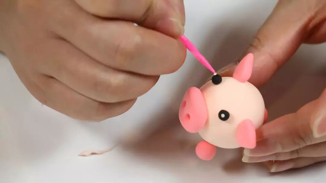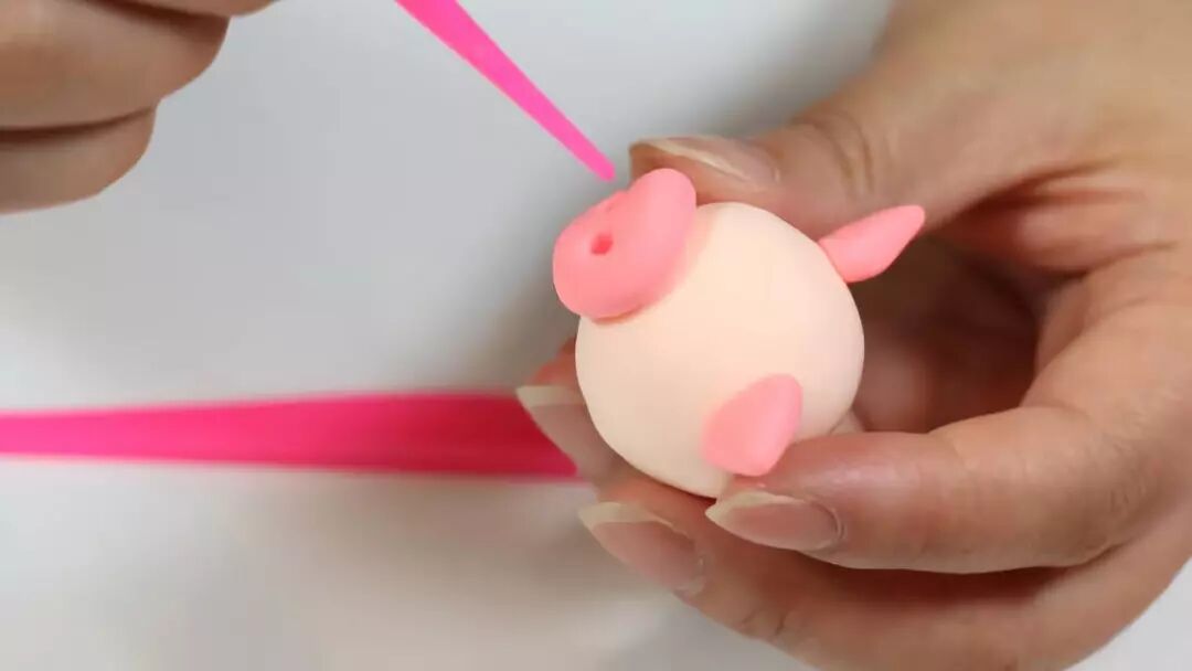 继续搓一个猪鼻子,不用忘了给它戳上两个鼻孔哦~