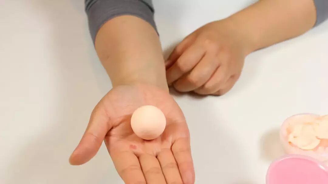 制作步骤:搓一个肉色的圆球,用来做兔子的脸蛋。