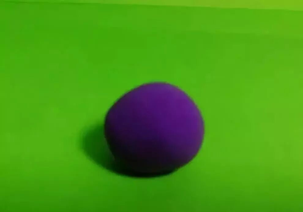 制作步骤:用紫色(颜色自己喜欢)揉成一个圆球,然后捏成圆锥形的,这就可以当做蘑菇的头部了;