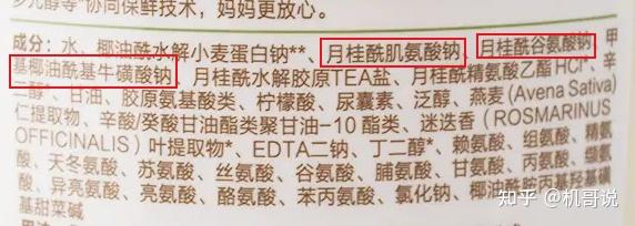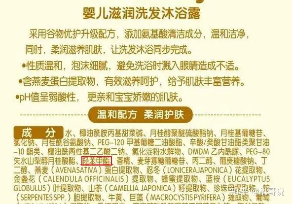 宝宝洗护用品也是新生儿大采购里必须要做的功课之一了。比起安全座椅、婴儿推车等大件产品,婴儿沐浴露洗发水相对而言就简单了很多,但也不能应付了事,毕竟直接接触宝宝皮肤的产品购买时还是需要仔细研究下的,机哥在做本篇攻略时就发现有不少商家会在成分方面玩文字游戏,如果对于成分方面不太了解的家长很容易被带进坑里。 下面就直接进入主题,看完后婴儿沐浴露的选择自己做主,不会再被商家忽悠了哈。 第1步:根据宝宝的年龄段选择 第2步:成分要认清 第3步:特殊成分要注意 第4步:选购误区 在选购宝宝洗护用品前,下面两个问题必须十分明确。 大家都知道,人的皮肤是呈弱酸性的。其实,人体皮肤的PH值随着年龄会发生变化。 婴儿的皮肤相对成人而言,更偏中性,并且会随着年龄的增长,逐渐往酸性方向发展。 我们来了解一下宝宝各阶段皮肤的特点: 新生儿阶段(0-6月): 幼童阶段(6-18月): 成长阶段(18月以后): 根据以上的特点,我们就可以得下面的结论: 对于刚出生的宝宝,首选PH值偏中性的洗护用品,对于宝宝稚嫩的皮肤刺激较小,同时需要特别注意沐浴露中的刺激成分;可以先买小瓶偏中性的宝宝洗护产品,来度过新生这一阶段。 随着宝宝的长大,可以选择PH值偏弱酸性的的洗护用品,更接近幼童皮肤的PH值。过了6个月的宝宝需要注重洗护品的保温性,也可以在洗完之后涂抹一些保湿润肤霜; 18个月个的宝宝皮肤分泌物开始增多,除了在选择弱酸性洗护用品的基础上,还需要注重洗护用品的清洁度,以避免宝宝受到细菌的侵扰。 沐浴露和洗发水的成分差别大吗?可以混着使用吗?对于成人的洗护用品而言,洗发水的清洁力度是比沐浴露要强的,因为头皮上的皮脂腺更发达,需要更强力的清洁用品才能清洗干净。如果二者短期缺货的话,临时交换替代一下问题不大,长期颠倒着用可能会带来一些问题,比如长期用洗发水洗澡导致皮肤干燥紧绷,长期用沐浴露洗头可能导致头发清洁不到位容易起头皮屑等。 而刚出生的宝宝头皮上的皮脂腺刚刚开始发育,头发也没有几根,基本不存在需要强力清洁才能洗干净的情况。即用沐浴露洗头,或者使用二合一的洗护产品,都是OK的。而在孩子进入成长阶段,即18个月以后,汗腺和皮脂腺都开始增多后,就有必要将沐浴露和洗发水的功能分开,沐浴露更温和保温,洗发水清洁更到位。 买洗护用品最重要的就是认清成分,只有牢牢掌握各种成分的功能和对皮肤的影响,不受五花八门的广告和网红营销影响,找到真正适合自己的产品。 婴儿洗护产品的成分可以在商品的外包装、瓶体侧面或背面的地方找到,通常来说排名越靠前的成分含量越高,经常买化妆品护肤品的宝妈们一定非常熟练了。如果是第一次看成分表的朋友一定非常头大。没关系,跟着机哥的攻略往下看,你就能从这些陌生的成分中获得有用的信息,帮助你决策了。 婴儿洗护产品的成分无非就是几部分:溶剂、表面活性剂、防腐剂、香精、添加剂(增稠剂、发泡剂等)、功效成分等。 溶剂通常来说都是水和甘油,没有什么别特的。下面机哥重点教大家辨认表面活性剂、防腐剂、香精这些成分中哪些对宝宝有影响。 沐浴露之所以能够清洁肌肤,是因为里面所含有的表面活性剂在发挥作用。常见的表面活性剂种类有皂基、硫酸盐硫酸聚醚硫酸酯盐(SLSSLES)、氨基酸、甜菜碱、烷基糖苷(APG),它们的刺激性也是由高到低的,只有后面三样适合新生儿宝宝使用。那么如何辨别这些表面活性剂呢?下面机哥来给大下扒下识别这些表活的技巧。 首先,表面活性剂在成分表的位置基本都排在溶剂的后面,即水和甘油的后面,所以你可以很快地定位到该产品的主要表面活性剂的几个成分,比如月桂酰谷氨酸钠啦、硬脂酸钾啦……当然,不排除部分商品使用了多种表活配方,有些表面活性成分会落在成分表的后面,在看成分表时一定要看完整了。 对应下面的名称特点,即可快速识别它是否是皂基or 硫酸盐类表活,如果是的话可以直接Pass掉这款产品了。 特点:清洁力特别强,偏碱性,泡沫丰富。对于皮肤的刺激性居表活之首,完全不建议婴幼儿使用。 如何识别: 脂肪酸:棕榈酸(十六酸)、硬脂酸(十八酸)、月桂酸(十二酸)、肉豆蔻酸(十四酸)等 识别举例: 硫酸盐硫酸聚醚硫酸酯盐清洁力也比较强,比皂基稍弱;SLS和SLES会刺激眼睛、皮肤和肺部,对于宝宝用品方面尽量避开使用。SLES还可能被一种叫做1,4-二恶烷的物质污染,这种物质已知会在实验动物身上引起癌症,很早之前报道过一些不合格的婴儿洗护产品正是因为里面检测出了超量的二恶烷。厂家不会刻意去添加二恶烷这个成分,二恶烷都是在生产环节中由SLES分解产生的,所以尽量避免选到含有SLESSLS类表面活性剂的产品。 如何识别: 识别举例: 氨基酸表活清洁力度中等,呈弱酸性,对皮肤的刺激比前两种表活小了不少,不少敏感肌同学会首选氨基酸表活成分的洗护用品。对于宝宝而言,含有氨基酸表活成分的清洁用品是可以使用的。 如何识别: 其中主要用于洗护类的氨基酸成分有:甘氨酸、谷氨酸、肌氨酸、牛磺酸 等 识别举例: 甜菜碱安全温和,清洁力度小,对皮肤刺激小,适合婴儿使用,宝宝洗护首选的表活成分之一。 如何识别: 识别举例: 这类表活通常称为葡糖苷,也是十分温和的成分,清洁力度小,对皮肤刺激小,适合新生儿使用,宝宝洗护首