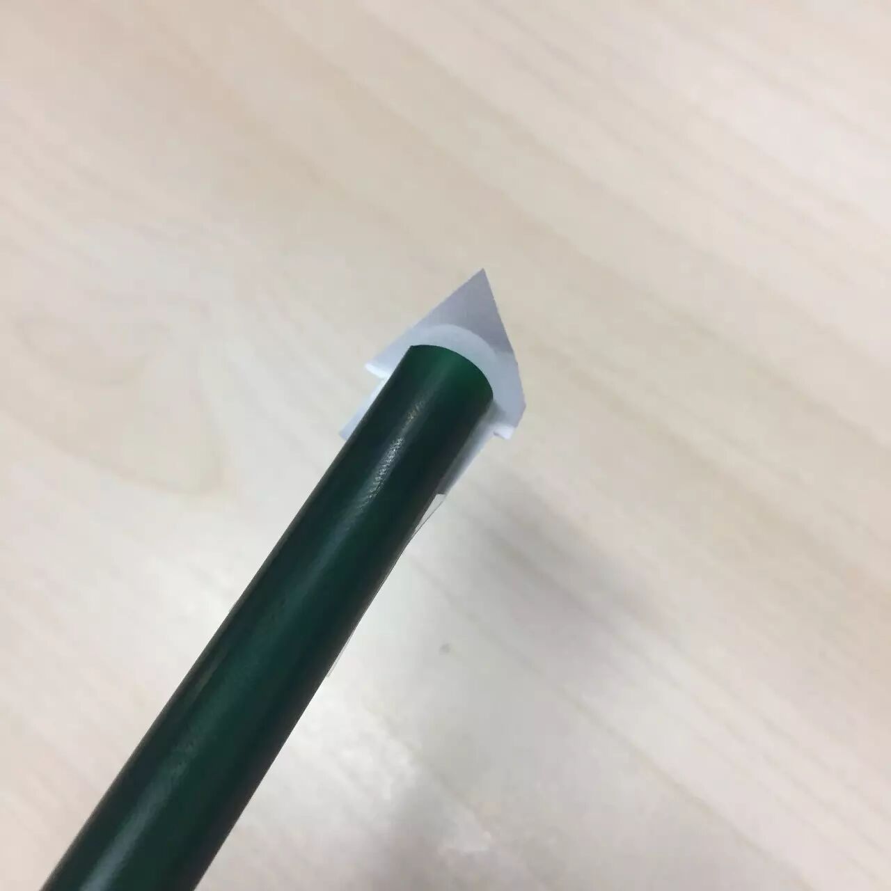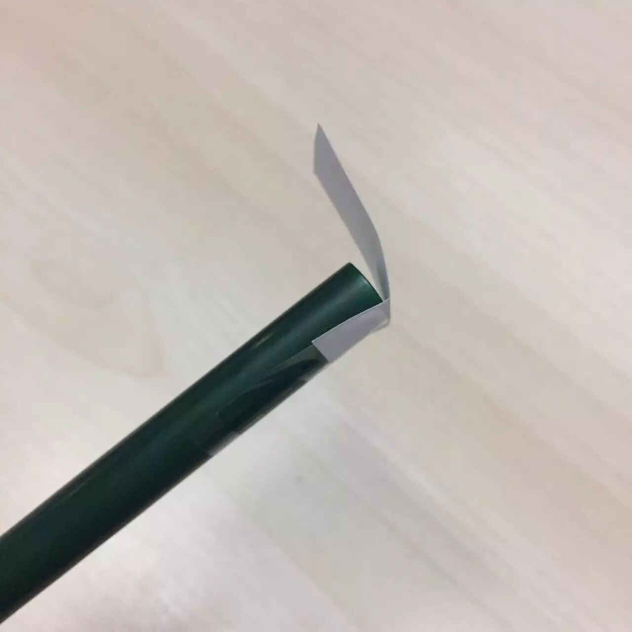 取一纸片,长度约2~3厘米,宽度则略大于吸管宽度,在纸片一端黏上透明胶带上。注意:胶带只黏住纸片一小部分即可,不可盖住纸片太多。