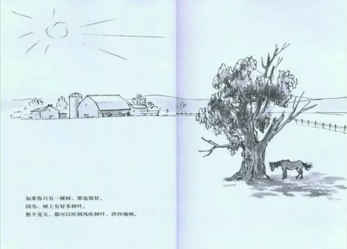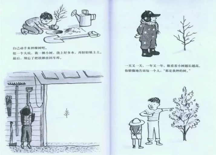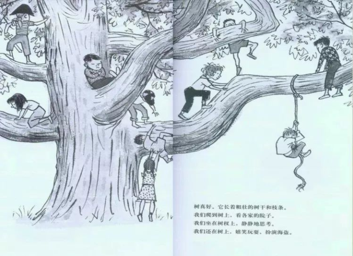 打开小小绘本,走进大大世界。 唤起阅读兴趣,培养阅读习惯。 欢迎走进——西西故事屋。 树真好大家好!我是大三班的王奕之,今天我要和大家分享的绘本是《树真好》,植树节就要来了,让我们一起在这个初春新绿、万般美好的季节中,感受大自然带给我们的美妙体验吧。 树真好,高高的大树遮住了天空。 树长在河边,树长在山谷,树长在高高的山顶上。 很多很多树在一起,就叫做大森林。 如果你只有一棵树,那也很好。 因为,树上有好多树叶。 整个夏天,都可以听到,风吹树叶沙沙地响。 秋天,树叶纷纷落下,我们在落叶中玩耍。 一双小脚蹚着树叶连滚带爬好不欢畅。 我们用树叶造房子,把树叶堆成山,点燃篝火。 树真好,它长着粗壮的树干和枝条。 我们爬到树上,看各家的院子。 我们坐在树叉上,静静地思考。 我们还坐在树上,嬉笑玩耍,扮演海盗。 如果它是苹果树,我们就爬上去摘苹果。 猫儿窜到树上,躲开追它的狗。 鸟儿在树上做巢,快乐的生活。 干枯的树枝从树上跳下来,让我们拿来在沙滩上画画儿。 树真好,树上可以荡秋千,或者,挂一篮鲜花。当你休息的时候,锄头也靠在树上休息吧。 树真好,它可以遮住阳光,让树下有大片阴凉。 奶牛卧在树荫下,躲开了夏天的热浪。 人们在树荫下野餐乘凉,宝宝在车里睡得很香。 房子旁边要有颗树,树能让屋子舒服又凉爽。 这颗树能挡住狂风,保护你家的房顶。 挖一个大坑,栽一棵小树,浇上好多水,再轻轻填上土。 最后,别忘了把铁锹挂回车库。 一天又一天,一年又一年,眼看着小树越长越高。 你骄傲的告诉每个人:“那是我种的树”。 人人都想有棵树,他们都想回到家中,每人种下一棵树。 /西西故事屋/ 扬州大学附属西郡幼儿园自己动手来种棵树吧。