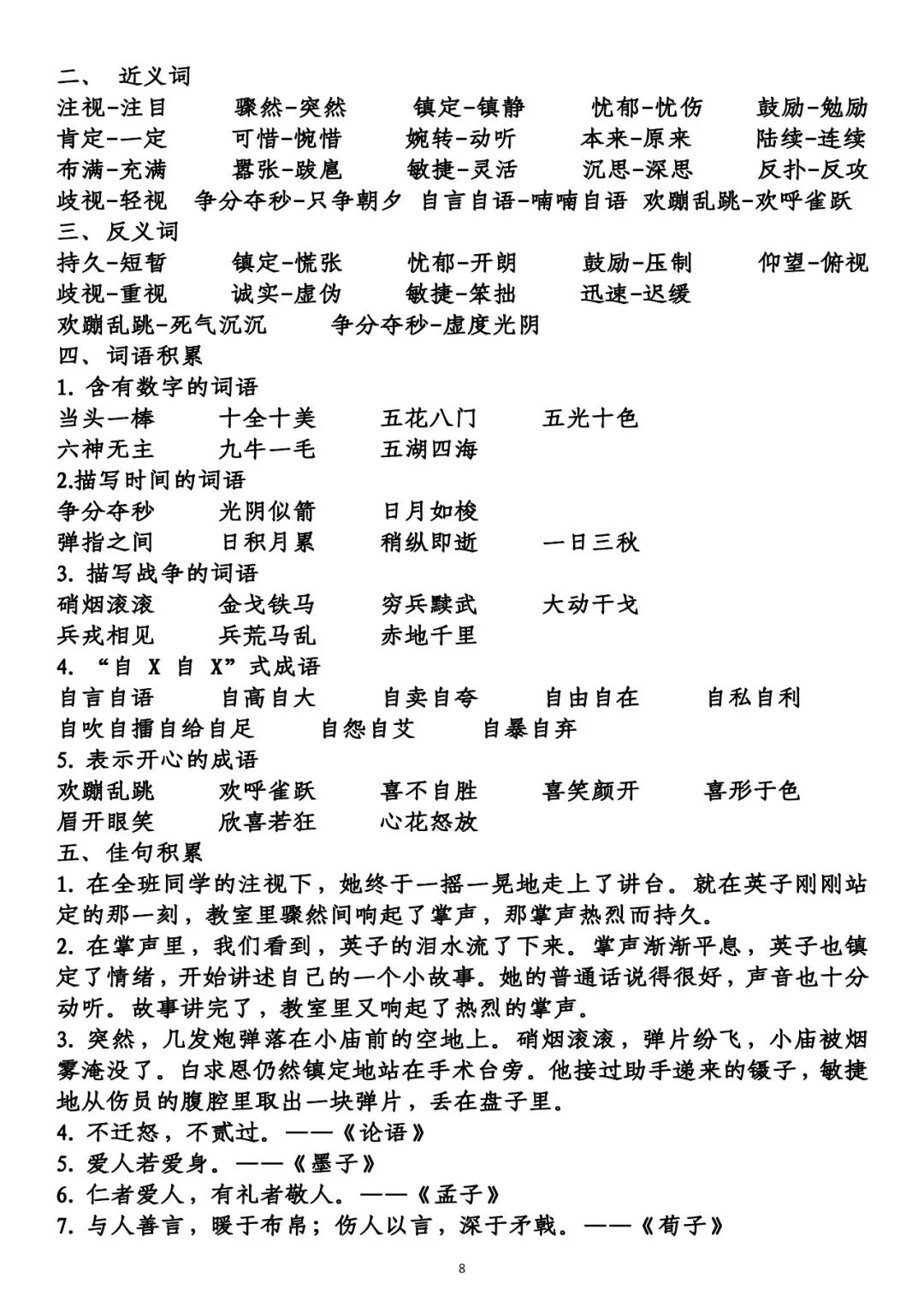 鲜艳的服装 敬爱的老师 飘扬的国旗 粗壮的枝干 好奇地听着 湿润的东风 五、佳句积累