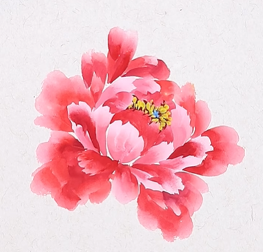 第七步:然后用胭脂色点出花心位置,最后用勾线笔蘸三绿藤黄色点出花蕊,一朵盛开的牡丹就画好了!