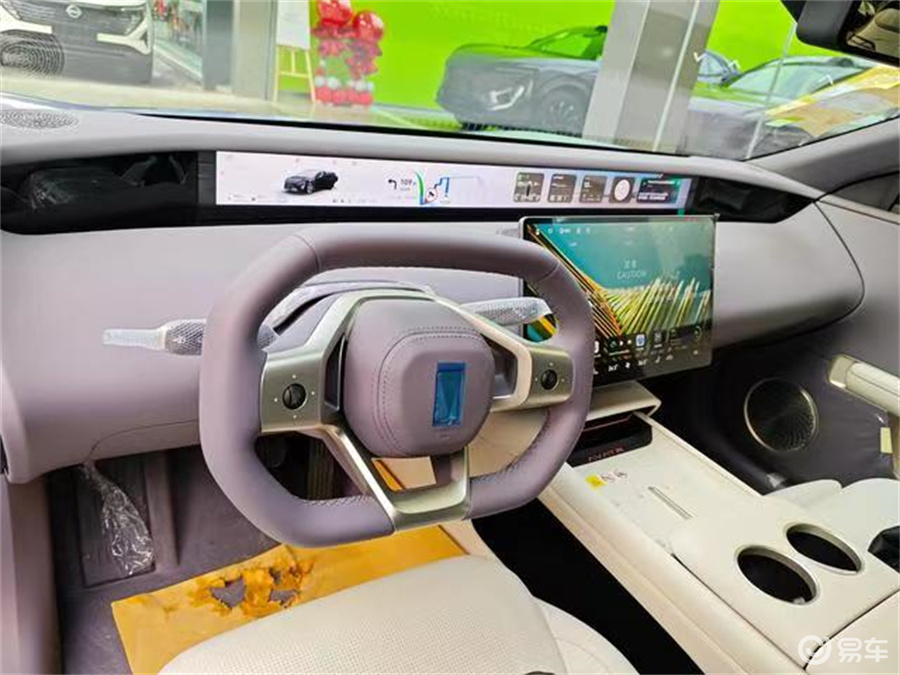 车内的话,阿维塔06延续了阿维塔07的设计风格,将提供紫米、深紫内饰配色。新车继续配备15.6英寸悬浮式中控屏和贯穿中控台的35.4英寸4K一体式远端屏,营造出满满的科技感。方向盘依旧采用的是上下平底的多边形,看起来很有个性。副仪表台的样式有所调整,但同样设置有手机无线充电面板和两个水杯架。