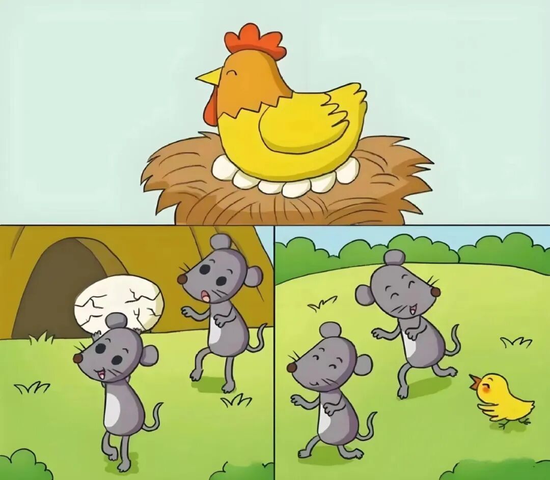 两只小老鼠看到母鸡在孵蛋,它们偷了一个鸡蛋,想带回家吃,结果发生了一件意外的事情。请你仔细观察,编一个有趣的故事,不少于200字。 1 施宇衡 一只母鸡在窝里孵蛋,一连孵了好几天。 两只老鼠躲在旁边看到了这一切,它们早就对这些蛋垂涎三尺了。这天,当母鸡去喝水的时候,两只老鼠立刻行动起来,偷偷摸摸地从鸡窝里抱走了一个鸡蛋。 它们满心欢喜地捧着鸡蛋走在路上,正做着美梦呢,突然,鸡蛋的壳发出“咔咔”的声音,眼看着就要破裂了。不一会儿,一只毛茸茸的小鸡从里面钻了出来。小鸡把这两只老鼠当成了妈妈,紧紧地跟在它们身后。老鼠们先是一愣,随后竟也欣然接受了这个小家伙。 它们开心地带着小鸡到处游玩,去草地里打滚,去花丛中穿梭。小鸡欢快地跑着、叫着,老鼠们也仿佛忘记了自己是小偷,沉浸在和小鸡一起玩耍的快乐中。 这奇妙的场景,真是让人意想不到啊! 2 黄茗睿 一天上午,饥肠辘辘的老鼠小灰和小星一起商量着去鸡窝里偷蛋吃。 他们俩蹑手蹑脚地靠近老母鸡的家,发现母鸡正在孵蛋呢。他们趁母鸡打瞌睡的时候,以迅雷不及掩耳之势抽走了一个鸡蛋。 他们俩兴奋地跑出去,开心地说:“这次我们俩算是有所收获了。”“是呀,是呀,我太开心了。”两只老鼠正志得意满地说笑着呢,突然,小星指着蛋壳惊讶地张大嘴巴说:“蛋壳好像裂了!”他们俩同时向鸡蛋看去,果不其然,蛋壳上出现了很多裂痕,像一条条小蛇一样延伸开来,然后“咔嚓”一声碎了,从鸡蛋壳里蹦出了一只小鸡。 刚破壳的小鸡扇着可爱的小翅膀,“啾啾啾”地跟着小灰和小星,这可把他俩惊呆了。就这样,小鸡一直追着他俩跑,玩得开心极了,貌似他们已经成了好朋友啦! 3 沈子皓 一天,阳光明媚,万里无云。鸡妈妈坐在柔软的稻草上,正专心致志地孵鸡蛋。想到过不了多久就能见到自己的宝宝了,鸡妈妈幸福地睡着了。 就在这时,从洞里钻出来两只大老鼠——可可和乐乐。它们准备出去找食物,正巧看见鸡妈妈在孵蛋。看到这么多又大又圆的鸡蛋,它俩馋得直流口水。可可和乐乐相视一笑,决定去偷一个蛋来尝尝。于是,它们蹑手蹑脚地走到鸡妈妈身边,小心翼翼地从鸡妈妈身下偷出来一个蛋,扛起蛋就跑。 可可和乐乐扛着鸡蛋跑到家门口。可可对乐乐说:“这个鸡蛋又大又圆,吃起来一定很美味,今天我们可以大饱口福了。”乐乐正要答话,突然发现蛋壳出现了裂缝,还没来得及跟可可说呢,“咔嚓”一声,蛋壳碎了,一只毛茸茸的小鸡从里面跳了出来。两只老鼠吓了一大跳,拔腿就跑。 小鸡看到老鼠,以为是妈妈,于是追着它们喊:“妈妈!妈妈!”两只老鼠边跑边笑这只小鸡真傻,居然认错了妈妈。这时,闻声赶来的鸡妈妈看见了它们,连忙抱住了小鸡,赶跑了老鼠。 这下,两只老鼠什么都没吃到,灰溜溜地跑回家了。 4 陈俊熹 早晨,微风习习,草地如同一块绿色的地毯,碧绿碧绿的。一朵朵小花散发着一股股淡淡的香味,沁人心脾。 两只小老鼠哼着小曲,悠闲地散着步。突然,他俩定睛一看,发现了一只母鸡正在孵蛋,这些蛋又大又圆,馋得它们口水直流。 这时,母鸡大概饿了,离开了鸡窝。鼠哥猫着腰,蹑手蹑脚地走了过去,双手捧起一颗蛋,举在头顶转过身子就跑。鼠哥暗自窃喜:哈哈,回家可以饱餐一顿了。鼠弟紧跟其后,就怕哥哥独享这个鸡蛋。 跑着跑着,突然,“咔嚓咔嚓”,鸡蛋发出了破裂的声音。紧接着,蛋壳上裂开了一条条缝。鼠弟瞪大了眼睛,嘴巴张得能放一个鸡蛋了。 没过多久,蛋就裂开了,一只小鸡从蛋壳里蹦了出来。小鸡看见两只老鼠,就蹦蹦跳跳地追了上去,喊着:“妈妈妈妈……”老鼠兄弟吓得转身溜走,跑回了老鼠洞。 两只老鼠累得气喘吁吁,它们发誓以后再也不偷鸡蛋了。 5 周耕宇 早上,风和日丽,一只母鸡正在窝里孵着蛋,她已经一连孵了很多天了。 这时,老鼠洞里的两只老鼠正摸着咕咕叫的肚子。老鼠乐乐提议说:“小小,我们出去找点东西吃吧。”说走就走,他们两个来到外边,东张张西望望,很快就找到了目标。小小看着鸡窝里的蛋,两眼放光,说:“我们要不偷几个鸡蛋尝尝?” 说干就干,他们鬼鬼祟祟地绕到母鸡的后边,趁母鸡不注意,乐乐偷拿了一个最大的鸡蛋,然后像箭似的向老鼠洞跑去。小小在后面紧紧跟着,不一会儿就到了洞口。他们累得满头大汗,气喘吁吁。 就在两只小老鼠准备品尝美味的鸡蛋时,突然鸡蛋上出现了几道裂纹,不一会儿,一只小鸡从鸡蛋里面蹦了出来,还冲着他们叫着:“妈妈,妈妈!”乐乐看了小小一眼,叹了口气:”唉,今天的午餐泡汤了!” 虽然没吃到鸡蛋,但看着可爱活泼的小鸡,他们心里却还是美滋滋的,不由自主地和小鸡开开心心地玩了起来。 6 陆婧涵 这是一个春风拂面的清晨,前不久,母鸡妈妈生了一窝蛋,如今,她正在鸡窝里专心致志地孵蛋呢!她一边孵,一边想:这么多鸡蛋,我一定会孵出很多可爱的小宝宝。想着想着,鸡妈妈就打了一个哈欠,很快就进入了甜甜的梦乡。 两只饥肠辘辘的老鼠兄弟贝贝和天天出来觅食。他们来到了鸡舍,看到鸡妈妈正在打着呼噜做着美梦呢,身体下孵着几枚又大又圆的鸡蛋。这时,贝贝灵光一闪,对天天说道:“鸡妈妈有这么多鸡蛋,我们偷走一个,她也不会察觉的。”天天竖起了大拇指,称赞道:“这真是一个好主意!”于是,他们兄弟俩就蹑手蹑脚地溜进鸡窝里,偷偷地拿走了一个鸡蛋。 贝贝扛着鸡