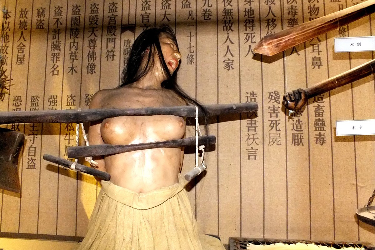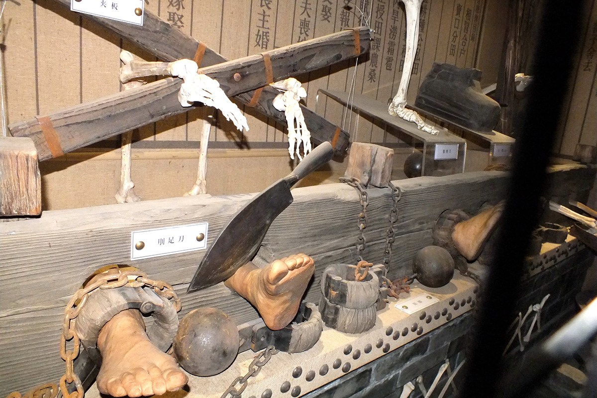 2014年10月25日,江苏淮安。江苏省廉政文化教育示范基地举办的中国古代刑具展融入了声光电等多种现代化元素,通过文字、实物、多媒体及各种模型展示了中国古代近两百种刑具,为广大游客了解和研究古代刑具文化提供了生动的实物标本。