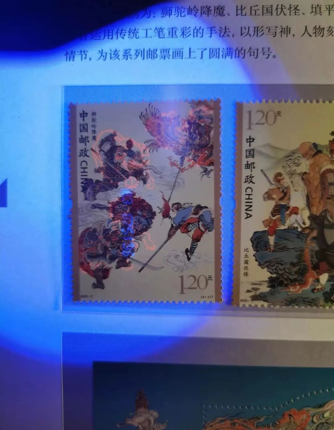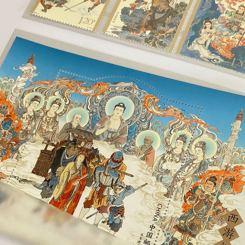 本次《中国邮政2023邮票年册》收录了这4枚邮票,省去了排队去求购的麻烦,给人以很大惊喜!除此之外,还有“猴票之父”黄永玉先生设计的23年兔票,每年必抢的生肖系列,还曾火上热搜,随着黄老逝世,已成绝唱!2023年6月18日发行的《货郎图》特种邮票,跟《甲辰年》生肖龙年邮票一样,也是王虎鸣老师和北京邮票厂联手之作品。目前市场上无齿大版折破4000元!市场爆发力惊人!《西游记(五)》特种邮票,是整个《西游记》题材的收官之作!也是四大名著邮票的收官之作。全系收官,这对于整个收藏界来说都是轰动性事件,意义之重大可想而知,尤其是抢手的小型张,当时中签率仅1%-3%!更有趣的是,在紫光灯下,邮票上的妖怪都会现出原形,仿佛大家也能拥有孙悟空“火眼金睛”的能力,十分过瘾。同样有意思的还有《中国古代文学家(五)》纪念邮票,在紫光灯下,会出现对应诗人的代表性诗句。《故宫》邮票是中国邮政为纪念故宫邮局开门迎客,于2023年1月9日发行的个性化服务专用邮票。作为故宫博物院首枚个性化服务专用邮票,这枚个性化服务专用邮票的诞生意义重大。还有2023年出品的一套小全张《平遥古城》特种邮票、热度破圈的《九色鹿》邮票等等。还有龙票设计师王虎鸣参与设计的兔年小本票、天安门个性化邮票……这些都收录在年册其中。