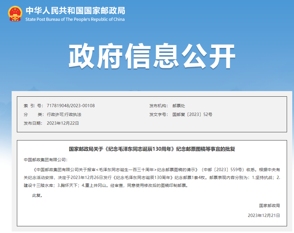 因为题材的特殊性,该套邮票的设计图稿在发行前5天才最终通过官方审核。事实上,中国邮政从1983年开始,每隔10年就会发行一套毛泽东同志诞辰系列邮票,2023年刚好是第五套。作为2023年关门票,更是将票友的期待值拉满!可谓吊足了广大票友的胃口。