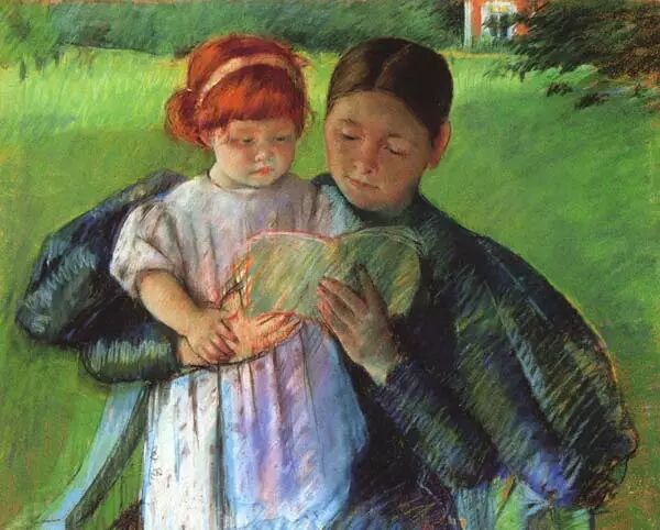 19世纪美国女画家卡萨特的粉画,以母爱为主题,专门表现年轻的妇女与儿童。作品洋溢着欢快的气氛和家庭的温暖。技巧达到了十分娴熟的地步。
