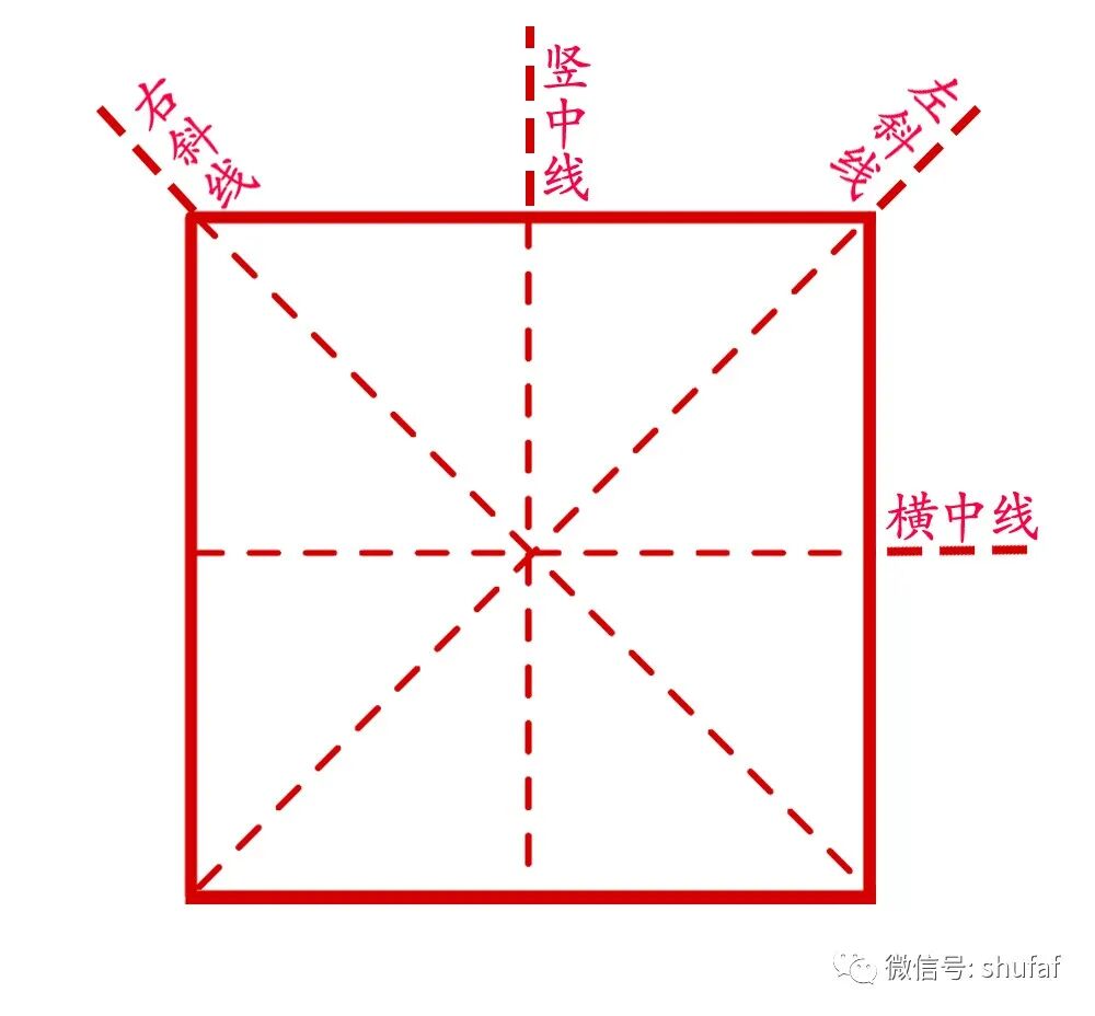 竖中线,可用来作为写竖笔时的参照,更重要的作用是检查每个字左右是否对称,中心是否平稳。