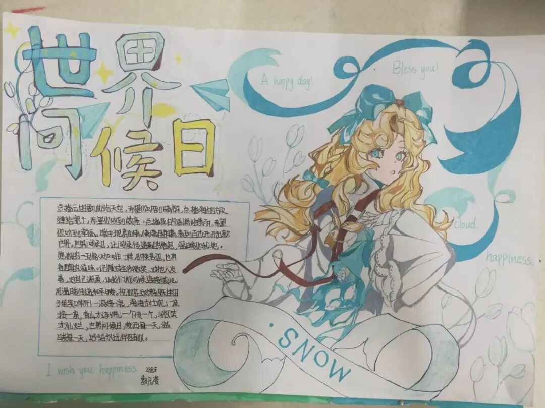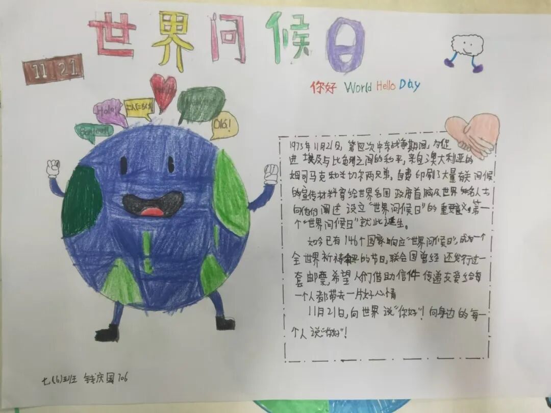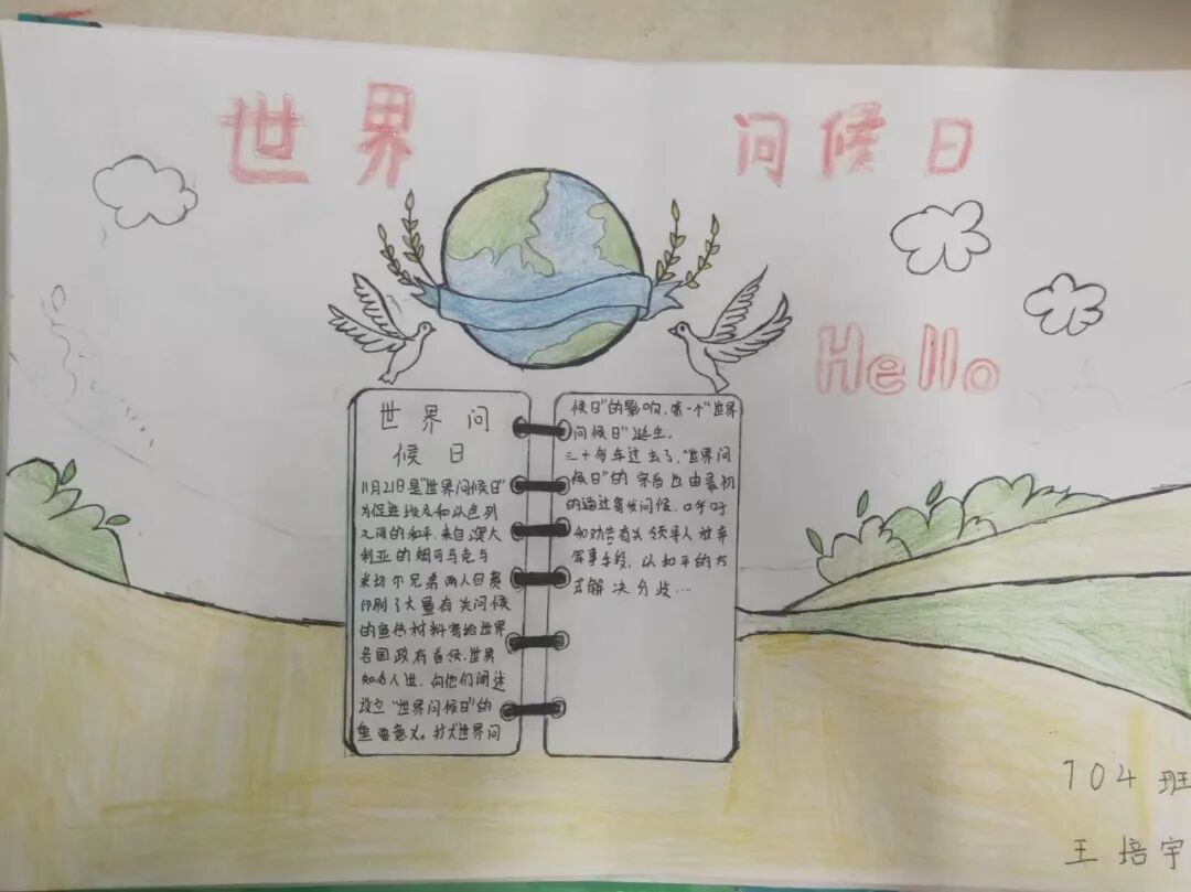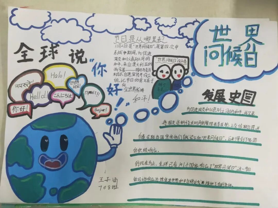 本次活动,不仅锻炼了同学们排版、抄写、美工、材料收集等多方面的综合能力,提升了美术创意及审美鉴赏等方面的专业素养,丰富了校园文化生活。也让同学们体验到我国传统节日的历史悠久,亲身感受到中华民族文化的魅力,同时通过了解世界问候日的来由,明白和平的重要意义,用沟通温暖彼此,守护爱与和平。