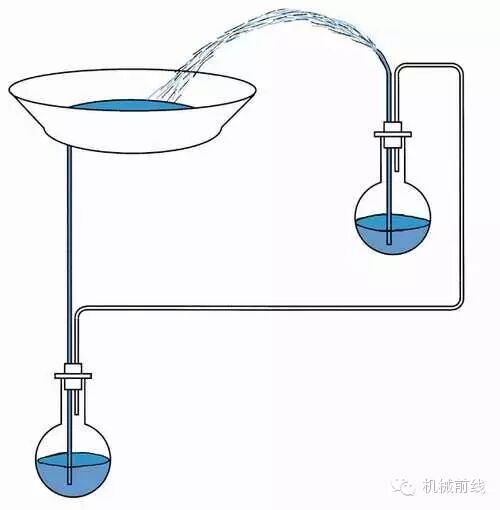 一切组装完毕,我们来启动喷泉吧。现将中间的瓶子取下来,装满水,然后拧紧瓶盖。将整个装置如装配图一样放好,轻轻的倒一杯水到注水池里面去吧,看看会有什么奇迹发生。