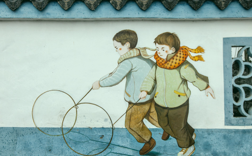 作者:朱文泉 大约三年级时。一日上课前,有几个同学在滚铁环,其中一个陈同学特别显眼。我以前没见过铁环,便走近这个同学询问“铁圈”从哪儿买的?他说:“不叫铁圈,叫铁环,是城里的亲戚送的。”我又问那“小圆球”干什么用?“这不叫圆球,叫铜铃。”他有点不耐烦,说完推着铁环一溜烟跑了。 和煦的阳光散放出浓浓春意,操场上的点点小草争着破土,远望,草色一片。穿着别致的陈同学,快速地滚着铁环一圈又一圈,带着穗子的铜铃声一阵又一阵,令人羡慕不已。我有点失落,呆呆站在那里,要不是上课铃响,我都忘记自己身在何处了。 放学回家的路上,我思索着城里有个亲戚真好,但转念一想不就是个铁环嘛,咱不能自己做一个吗!于是到家放下书包,拿了一把镰刀,径直走到与韦家搭界的田埂上,转来转去,最后砍下五根长长的、粗细适中的柳条。妈妈问做什么呢?“做柳环。”我先把一根柳条弯曲对接,觉得圈太大,再弯曲时,用力过猛折了。又拿第二根、第三根,同样的结果。第四根圈子大小合适了,但柳条根部与柳条上部粗细不同,削成坡面对接时,怎么也扎不紧,还是在妈妈的帮助下,拿来细麻线一道一道扎得结结实实。 到哪去弄滚“柳环”的钩子呢?晚饭后正寻思着,看到妈妈用火叉清理锅膛灰,我眼睛一亮,这火叉上不就有钩子吗,于是拿着它到“柳环”上比画,发现这个钩是“J”字形,要向前再旋转一百八十度才能变成推铁环的钩。我问妈妈怎么办,妈妈琢磨了一会,便拿来钳子和铁丝,剪剪敲敲做了一个弯钩绑在火叉上,再一比画,勉强可用,心里充满了欢喜。第二天是星期日,我早早起来拿着“柳环”和钩子到社场上,准备痛快地滚上一回。哪料到柳环不太圆,推不到几步就要倒地,尤其柳根与柳梢接合部麻痕突出,钩子推到此处需要手拧一下,让钩子挪过去才能继续推,否则就推不过去。不一会,出了一身汗,凑合着过了把瘾。 第二天放学回来,新的情况发生了。由于柳条是鲜的,割下两天水分抽干了,尤以柳梢部分鲜嫩,萎缩更为明显,结果从接合部脱离,柳环解体了。人家自愿分离,咱也无法“重圆”。因受昨日母亲的启发,拿来几圈铁丝,又试着做一个“铁丝环”,一根铁丝太细,四根铁丝才能做成铁环那么粗,于是又在母亲帮助下,用细麻一道一道缠紧,这下倒结实,但是钩子与细麻之间无法润滑磨合,放到地上根本滚不动,只好弯腰用手推着“铁丝环”转几圈了事。 母亲看到我扫兴的样子,劝我说:“乖,别扎了,还是买一个吧!” 晚饭后,桌子上拾掇干净,煤油灯一闪一闪,听爸爸妈妈对话。 妈妈先开口:“小大(我的乳名小大新)喜欢滚铁环,你给他买一个吧。” 爸:“小孩谁不喜欢玩,滚铁环能滚出什么名堂?”爸把身子一转对着我说:“好好读书!”说完便到东头房睡觉去了。 我望着妈妈无奈的样子,又感激,又气愤。便嘟囔着走向西头屋:“我长大了不是买一个铁环,我要买一百个铁环!” 后面几天,妈妈对爸爸没有好脸色,我也不愿跟他在一起,吃了晚饭我就进西屋。一日晚饭后,爸妈又开始对话,我便蹑手蹑脚走到门旁,伸长脖子侧耳细听。 爸若无其事地说:“你好像不高兴?” 妈:“孩子不高兴,我怎么高兴,买个铁环有什么了不起?” 爸:“我不是怕影响他念书嘛!” 妈:“你不买他就念书啦?这两天他用柳条、铁丝做铁环都没做成,就是想有个真铁环滚滚,你买给他,他不就安心读书了嘛,你不买,他反而不好好念书。” 爸:“非要滚铁环吗,踢毽子、跳绳不也行嘛!” 妈:“踢毽、跳绳是可以,女孩子更喜欢,男孩子喜欢追逐、斗胜,滚铁环更适合他们!” 爸:“滚铁环能滚出什么本事?” 妈:“怎么不是本事,你推独轮车不是本事吗,开始你推盐左右摇晃不敢多推,推了几趟不就稳平了吗,滚铁环也是这个理!小鬏多运动,长身体,运动以后读书灵,这不就是长本事嘛。” 爸:“这话倒不假,我怕他玩出瘾来。” 妈:“不会的,也不是常玩。小孩玩东西都是一阵一阵子,过一两年长大了,兴趣可能又变了呢。” 爸:“嗯。” 我听得入迷,满脸都是泪水。 又过了三天,爸爸从街上带回一副铁环。爸爸高兴地告诉我说,街上没得卖,是在铁匠铺新打的。我琢磨不能过于高兴,便平静地把接过来的铁环放在一边。一连几天心里痒痒,但提醒自己现在不能滚,不然爸爸不放心。 熬到了星期天。吃过早饭,束紧裤带,穿好褂子,思量今天要滚个痛快。如同出征,先活动一下胳膊腿,尔后在房间扫视一周,便拿着铁环,肩着钩子,快步走到社场滚了起来。开始找不到用力点,滚几步环就倒下来,尤其低头盯环,不敢用力,愈慢愈容易倒。后来试着直起腰板,眼向前看,用力快推,脚步跟上,环既倒不了,又跑不了,始终能在手钩的控制之下。试着滚了几圈之后,我感到既能快、又能慢、还能跑,既可直腰、又可弯腰,稍向前倾、弯点腰反而滚得更快。到了晌午,我能一口气滚上二十圈,环随钩使、钩听人唤,感觉运用自如。 望着太阳已指向正南,摸摸身上衣服已经湿透,心想坏了,滚的时间太长了,拿起家什急急忙忙赶回家,看到爸爸正坐在堂屋望着我,我知道挨训是少不了了。爸爸招呼我坐下,我立即正襟危坐。爸爸说:“你滚得不错,小男孩玩就好好玩,念就好好念,磨刀不误砍柴工。”爸爸的话使我感到意外,后来才知道爸爸就在社场草垛旁,一边和人插呱,一边看着我滚铁环,旁边的两人都夸奖我在校成绩好、表现好,爸爸心里高兴。 晚