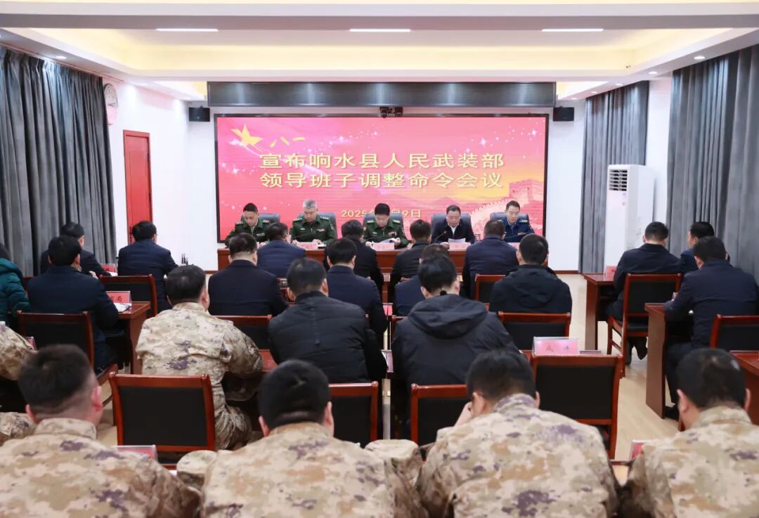 1月9日下午,宣布响水县人武部领导班子调整命令会议召开。盐城军分区大校政治委员桑昌烈,县委书记、县人武部党委第一书记郭超出席会议并讲话。县委常委、人武部部长薛峰主持。