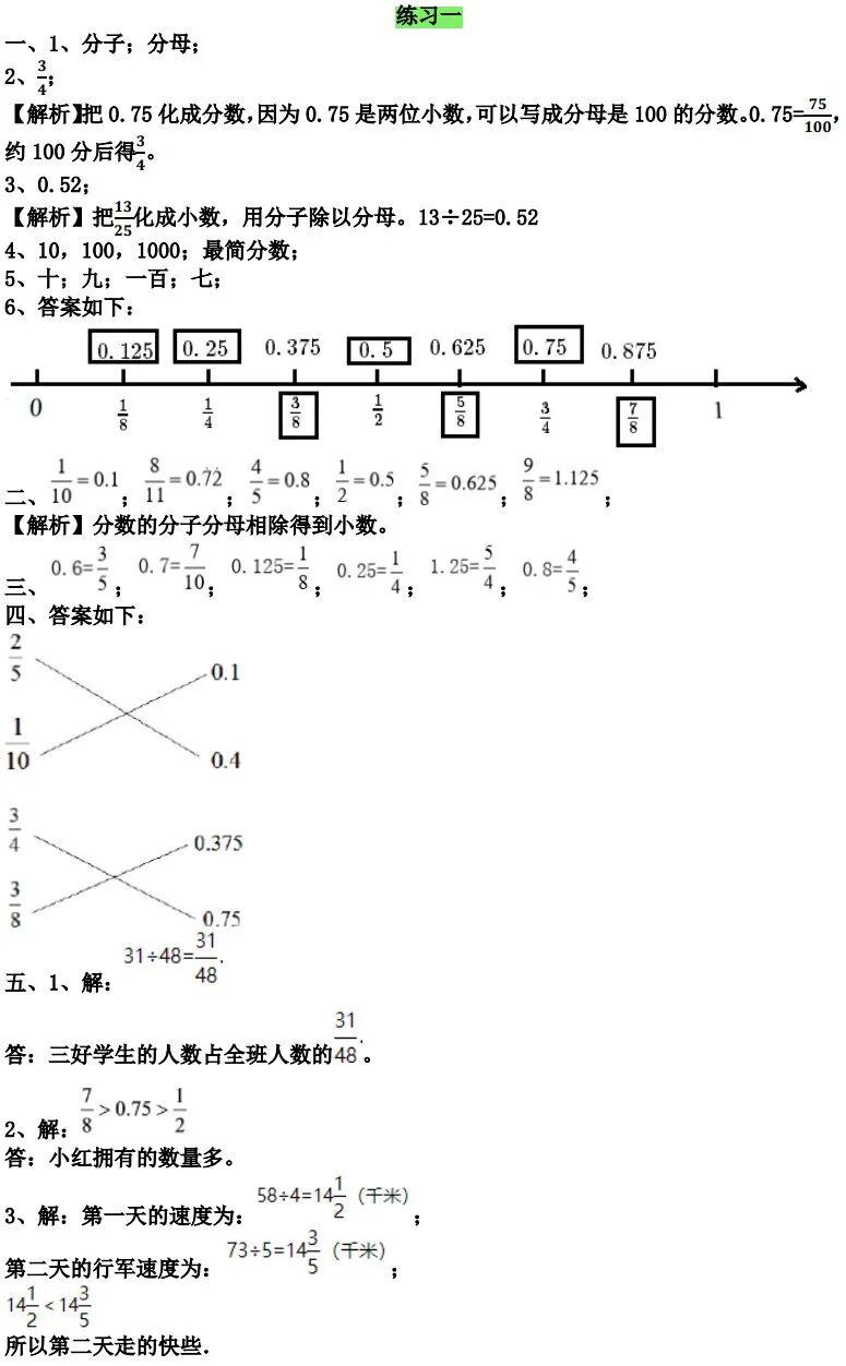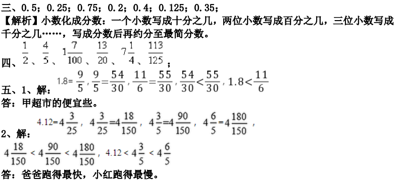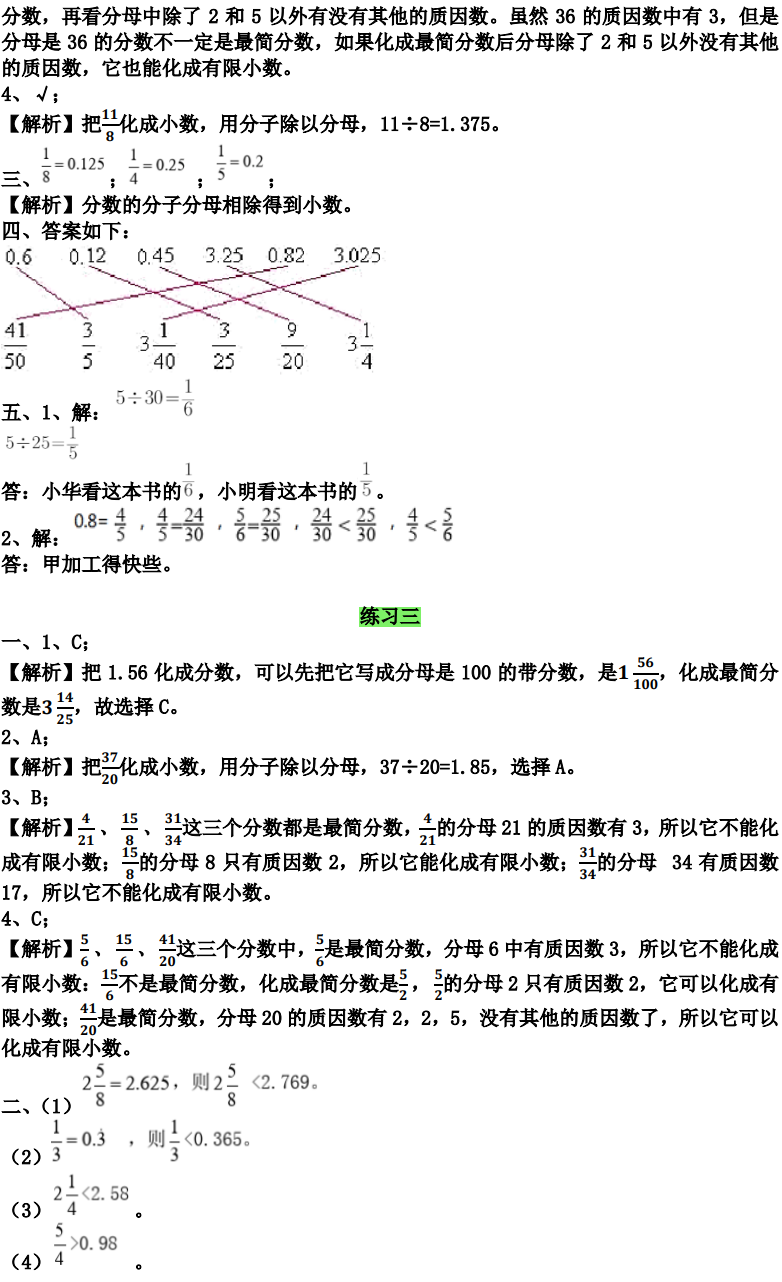(2)分数不是10,100,1000,...的分数化成小数:根据分数与除法的关系,直接用分子除以分母。如果除不尽,就接照题目要求保留一定的小数位数。