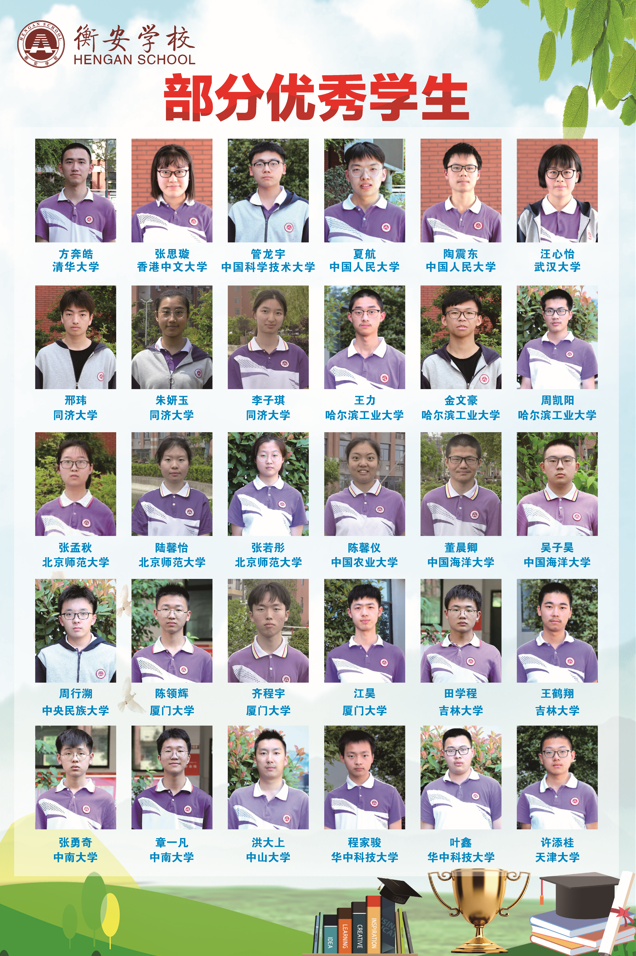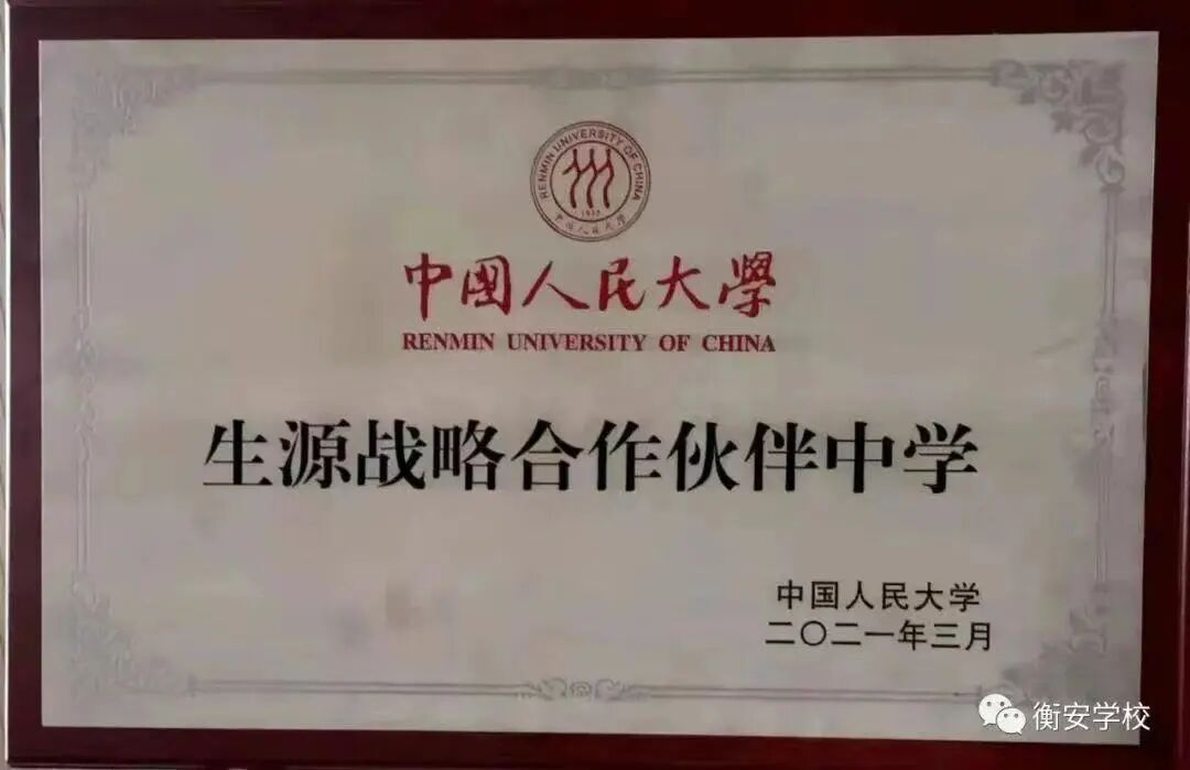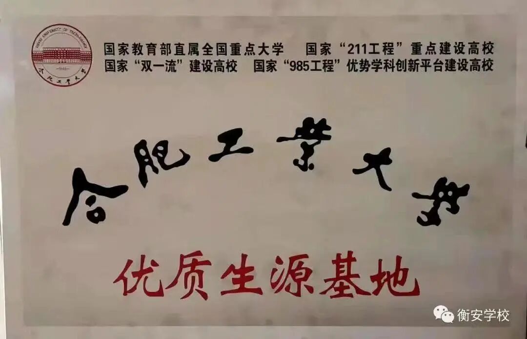 自开办以来,学校先后有300余名毕业生考入清华大学、中国人民大学、中国科技大学等双一流高校,被中国人民大学、合肥工业大学等高校认定为优质生源基地。学校办学成果得到了全省广大家长和社会各界人士的认可与支持,发展中的衡安学校正朝着学生乐学、教师乐教、家长满意、社会认可的国内一流中学迈进。
