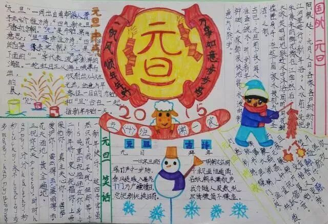 不知不觉就要到元旦了,在2022年元旦到来之际,估计老师又要给孩子布置手抄报的作业了。下面,小莉老师为大家搜集了一些充满童趣的手抄报和简笔画素材,让孩子们画出一份能“鹤立鸡群”的手抄报,赶紧去收藏吧! 元旦来历 中国元旦历来指的是夏历(农历、阴历)正月初一。正月初一的计算方法,在汉武帝时期以前也是很不统一的。因此,历代的元旦月、日也并不一致。夏朝的夏历以孟喜月(元月)为正月,商朝的殷历以腊月(十二月)为正月,周朝的周历以冬月(十一月)为正月。秦始皇统一中国后,又以阳春月(十月)为正月,即十月初一为元旦。 灯笼简笔画 鞭炮简笔画 狗狗简笔画 水饺简笔画 中国结简笔画 雪人简笔画 红包简笔画 Q版食物简笔画 各类Q版简笔画 新年必备简笔画 元旦专属图案简笔画![]()