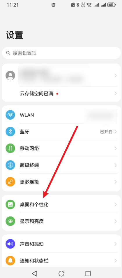 第二步:进入手机设置后,我们需要找到并点击【桌面和个性化】;