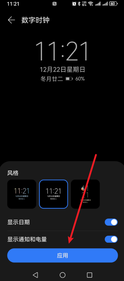 第五步:最后我们可以再对时钟进行风格上的选择,再点击底部的【应用】就可以了,如下图所示: