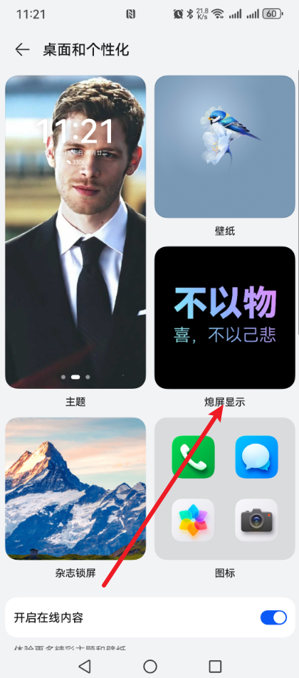 第三步:然后在个性化中就能看到【息屏显示】选项,点击它进入设置页面;