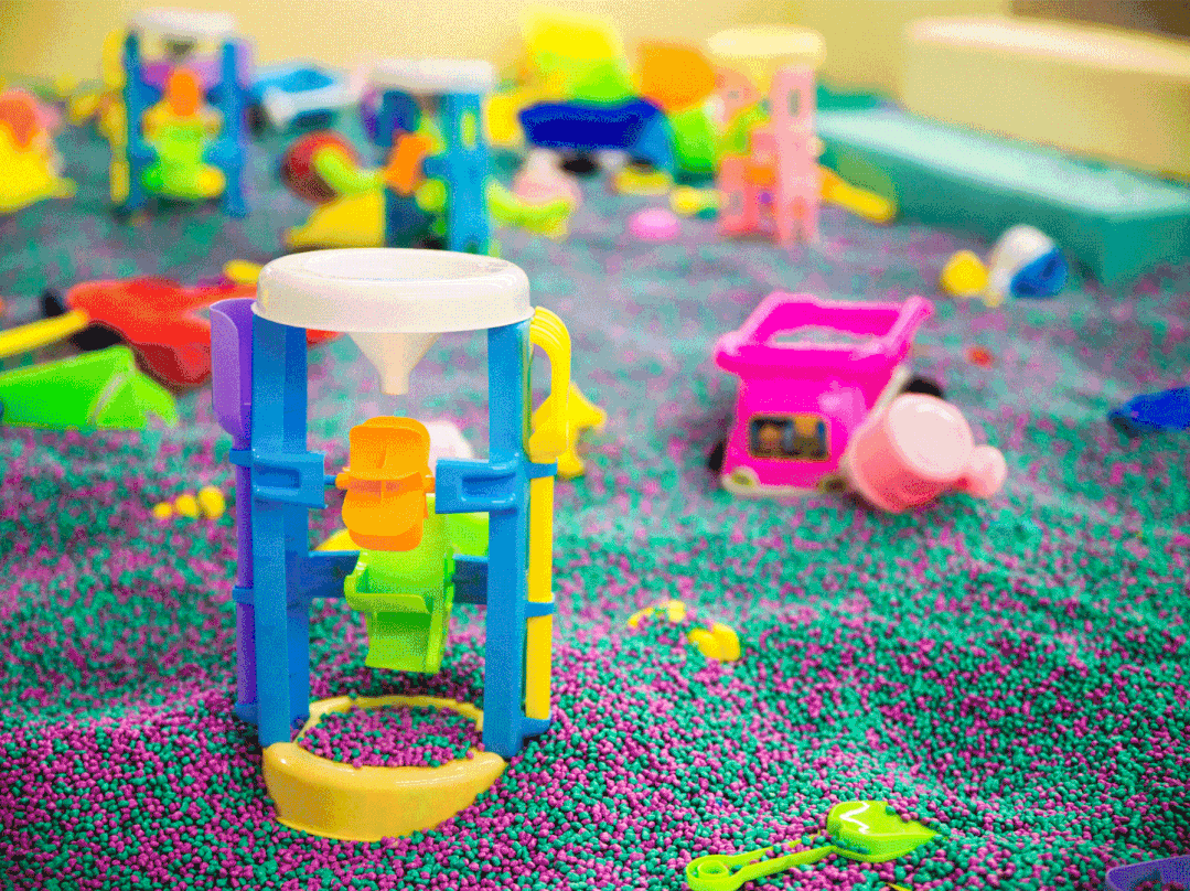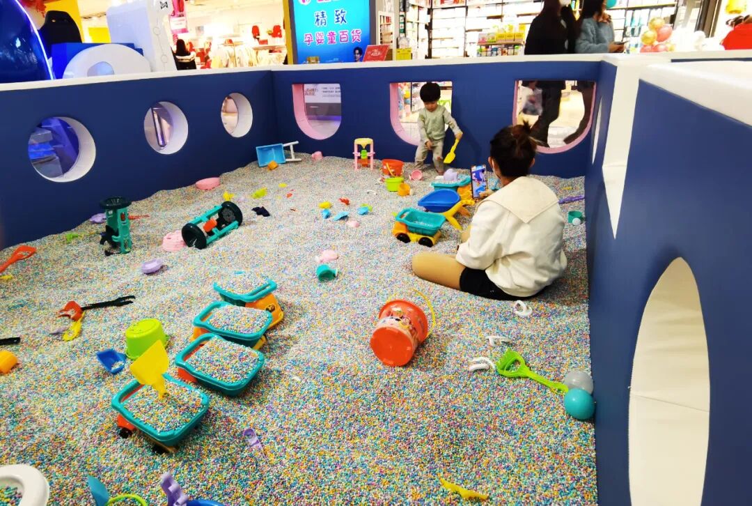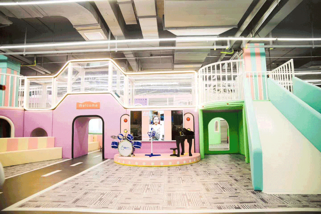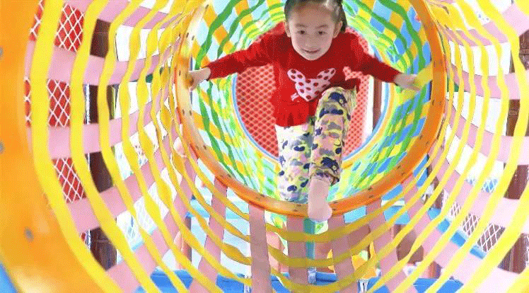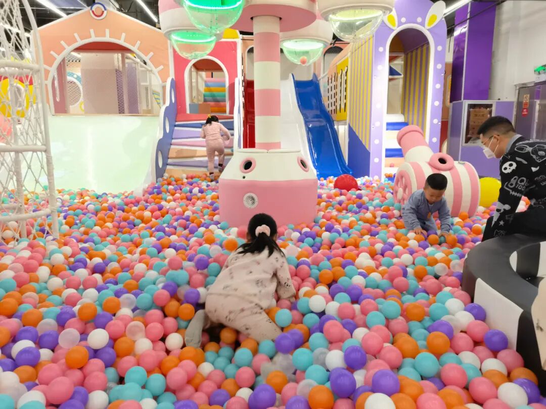 用轻塑料制作的积木块架起的小小城墙划分区域,装满海洋球的滑梯,大片积木池就是跌在身上也不觉得疼!
