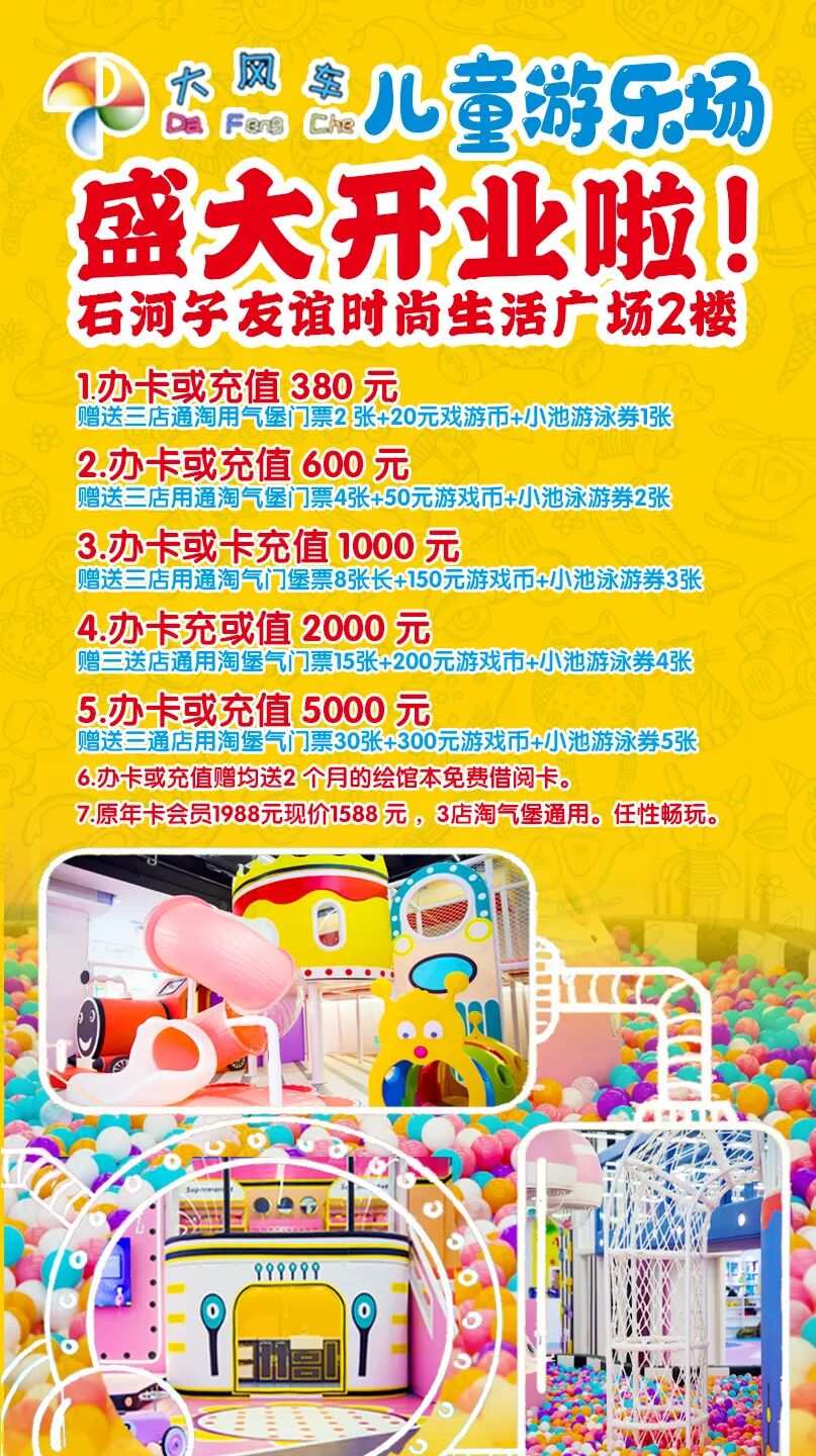 大风车五星广场店每年5.1之后还有夜市户外游乐,届时,带上小宝贝们一起感受夏天孩子们专属的快乐吧~