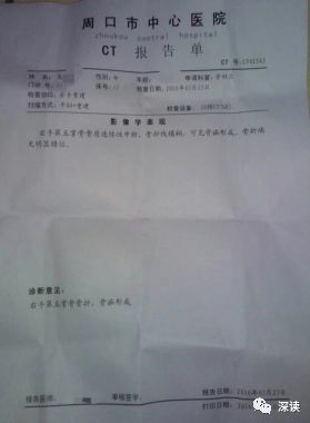 周口市中心医院对吴某某骨折CT报告单