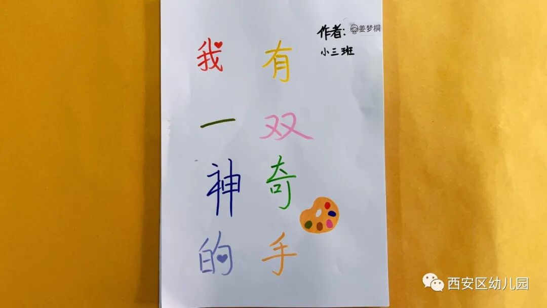 我有一双神奇的小手,用小手蘸取各种颜色的颜料,动动小脑筋,发挥想象力,小手可以变成什么呢?可以变成小怪兽、变成大螃蟹、变成大螃蟹、变成花孔雀……我们的小手可真有趣!