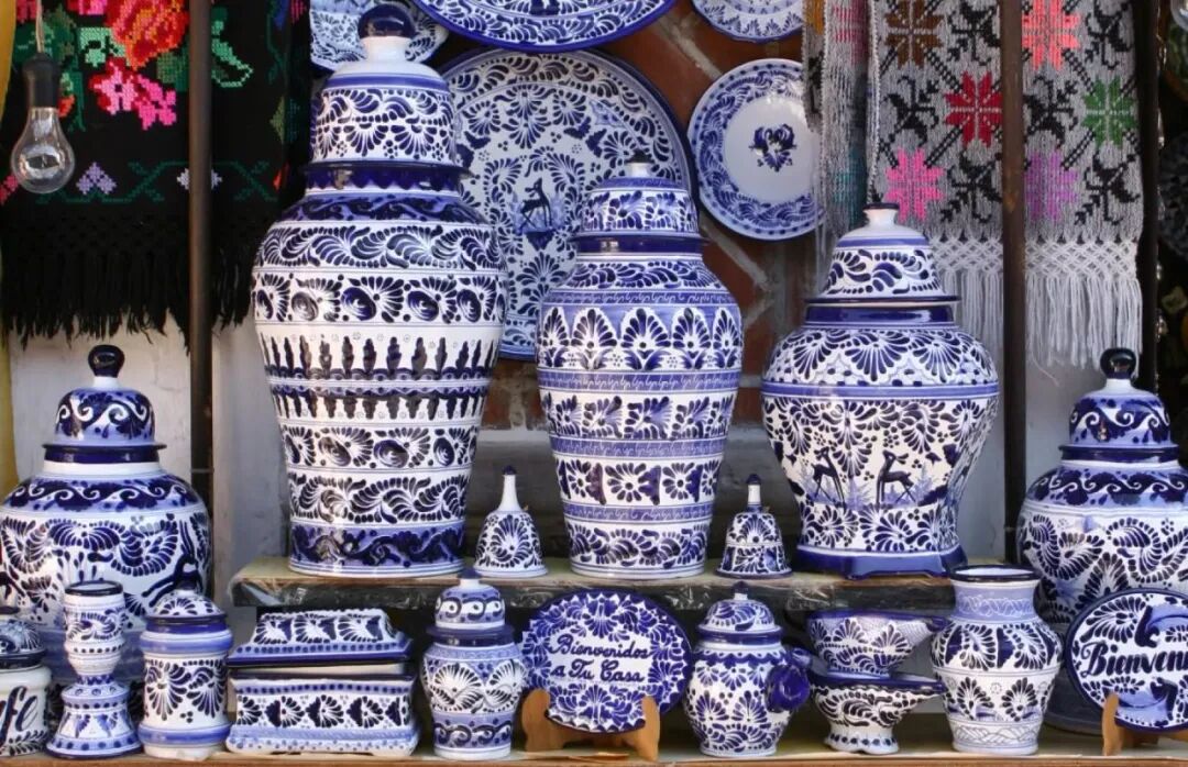 Talavera: 明亮的蓝白相间陶器起源于摩尔人,随西班牙殖民者传入Puebla。至今为止,墨西哥传统的Talavera制作仍沿用16世纪的工艺,同样该工艺也应用于花瓶、碗、盘子以及杯子的釉面制作。Dolores Hidalgo有许多便宜漂亮的陶器,这里的很多陶器工作坊都对游客开放。