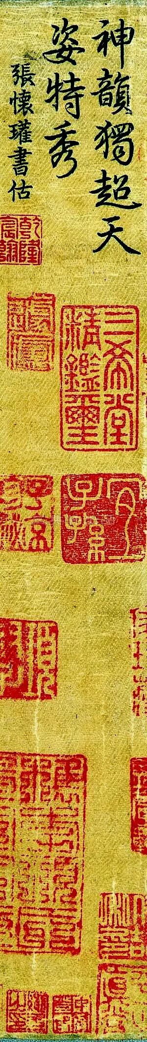 宋徽宗赵佶《闰中秋月帖》,故宫博物院藏。这幅法帖是对中秋月的吟咏:“桂彩中秋特地圆,况当余闰魄澄鲜。因怀胜赏初经月,免使诗人叹隔年。万象敛光增浩荡,四溟收夜助婵娟。鳞云清廓心田豫,乘兴能无赋咏篇。”诗文从与中秋相关的桂花、月亮等因素中生发出美好之意,营造出关于月夜的独特意境。对于中国传统文人来说,借物抒情是其抒发思想情感的重要手法,作为皇帝又是典型文人的宋徽宗,亦少不了这种情怀。这幅法帖用笔刚健挺拔又不失妩媚,尽显帝王之书的华丽之美,又与诗境相合。